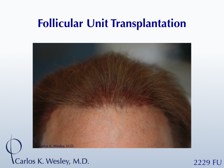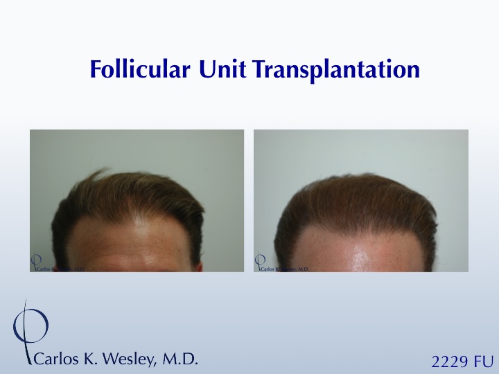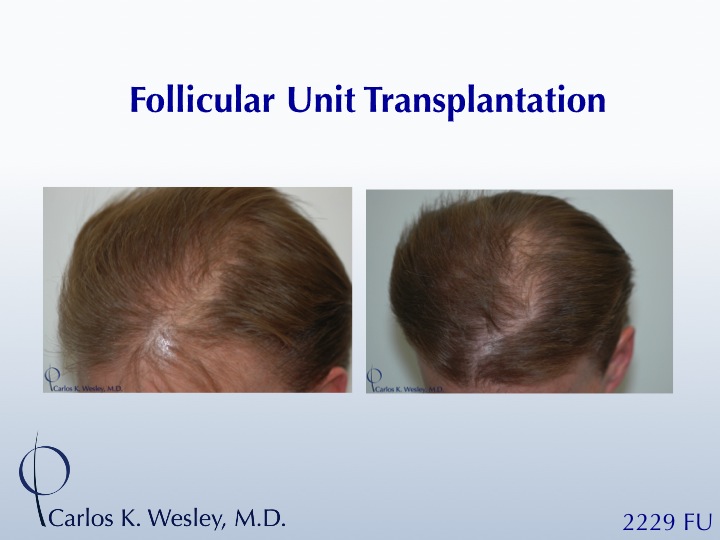This 46-year-old patient underwent a 2229 graft session and returned to the office 14 months later.