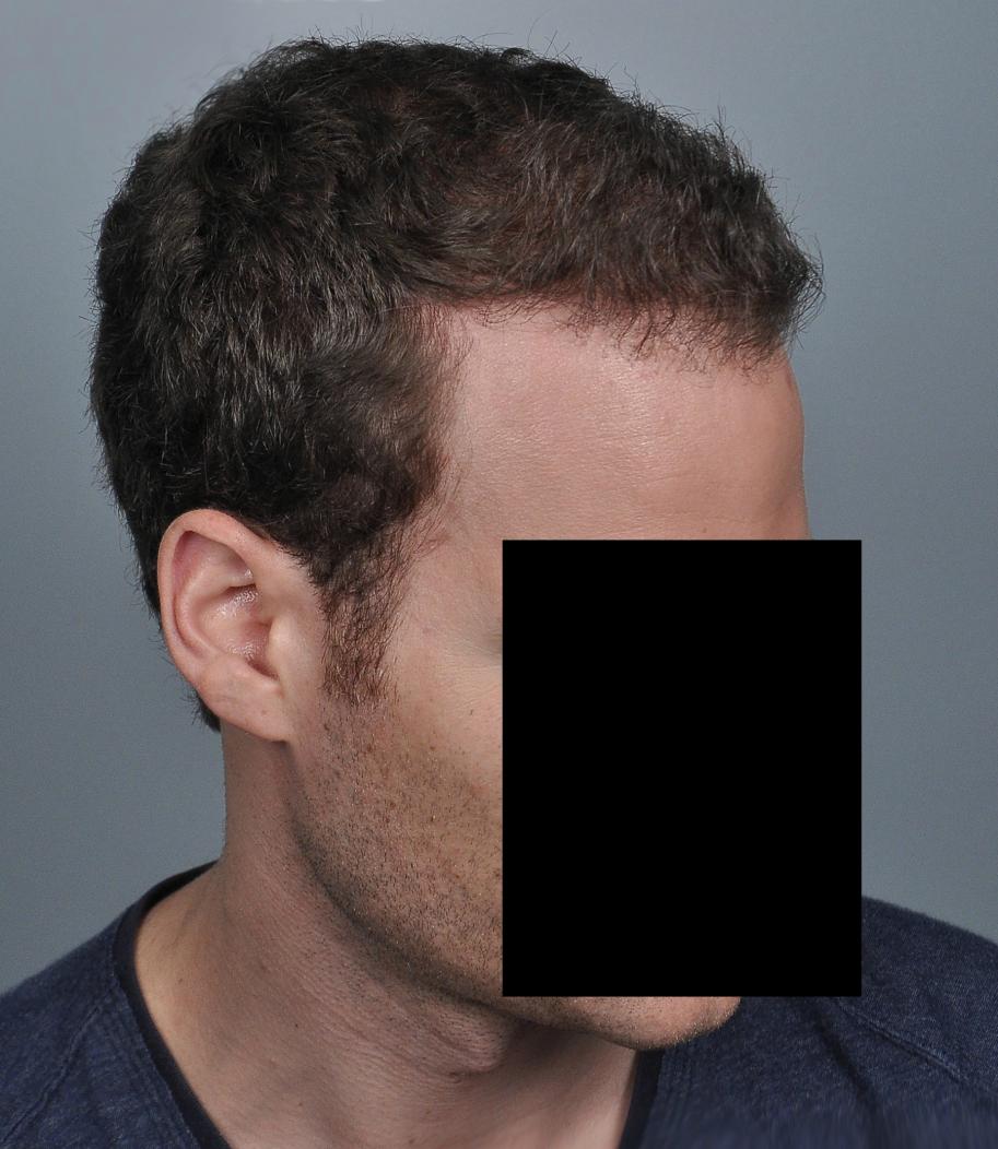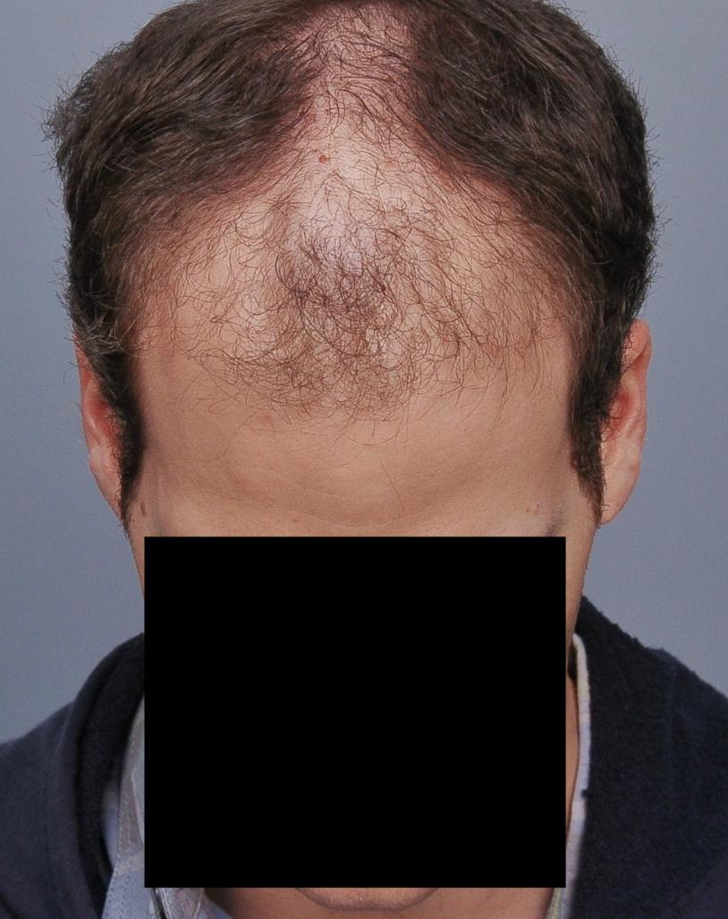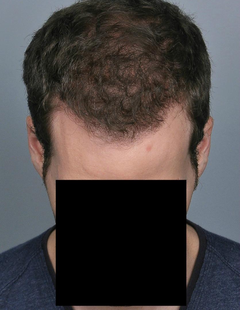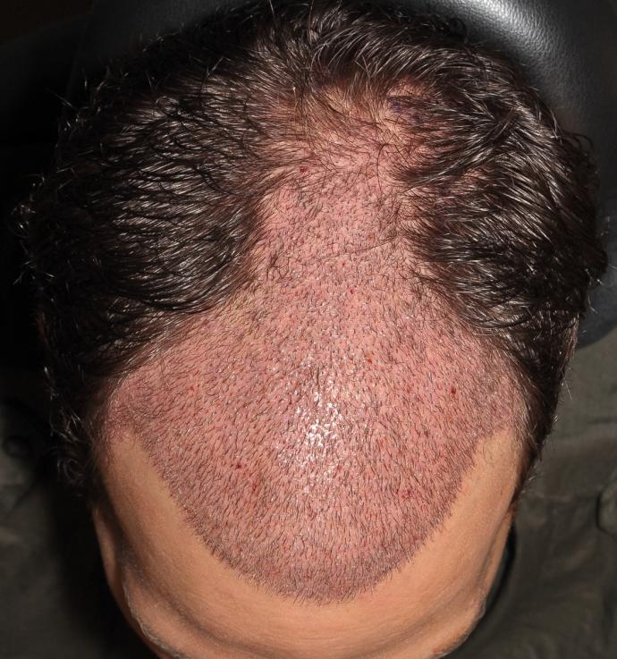 This patient underwent FUT with 3,539 grafts (1-895, 2-=1785, 3-859 = 7,042 hairs). He is shown 15 months later. He did not take finasteride.