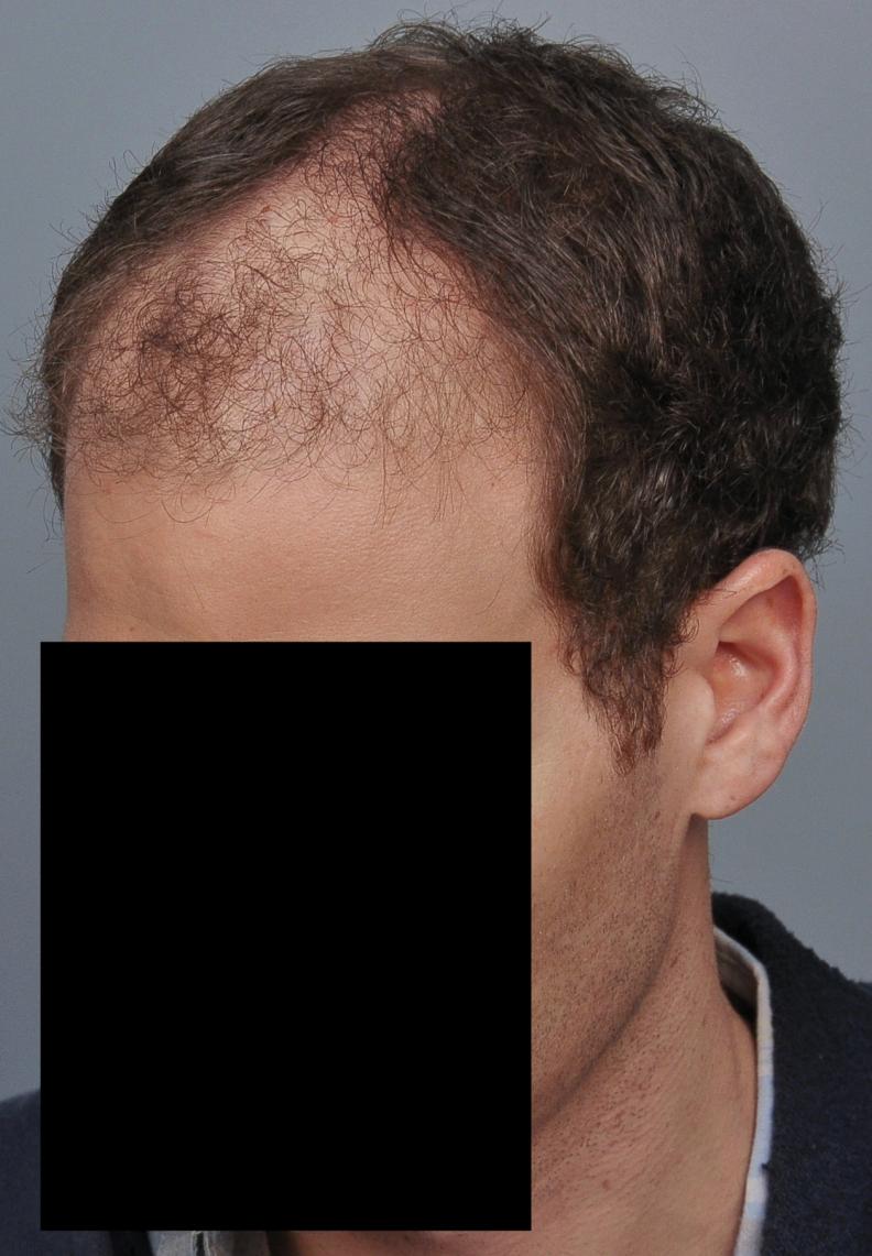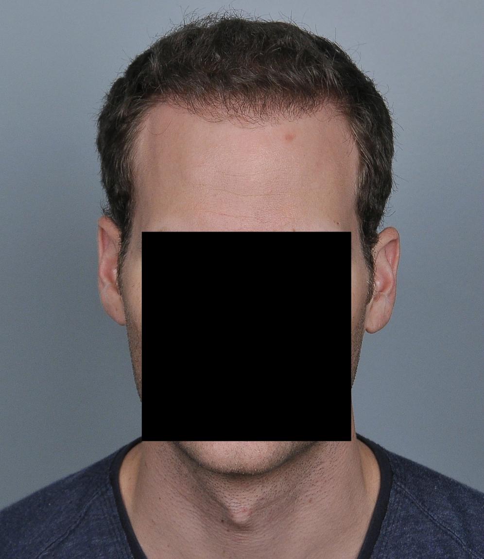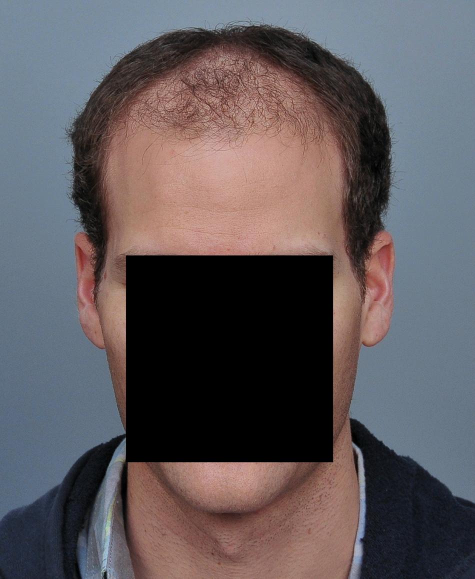 This patient underwent FUT with 3,539 grafts (1-895, 2-=1785, 3-859 = 7,042 hairs). He is shown 15 months later. He did not take finasteride.