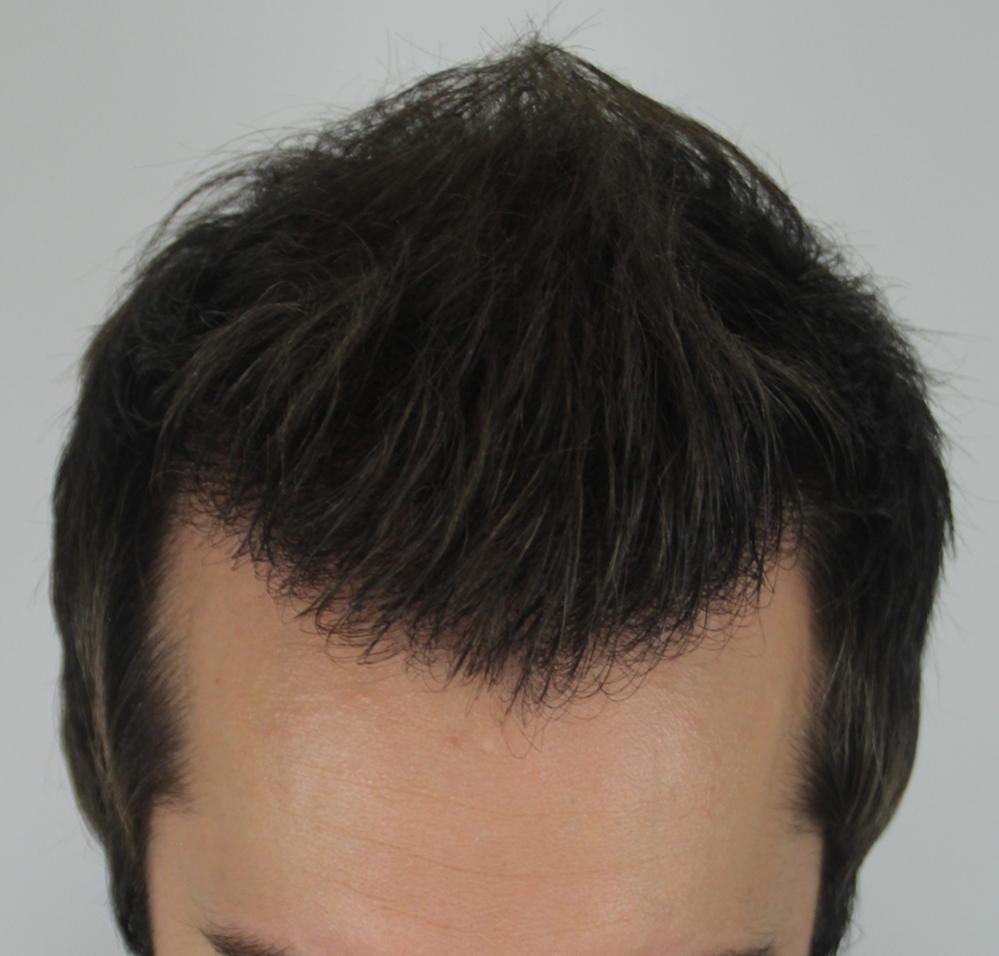 This 35 year old patient came to Dr. Rahal in order to restore his hairline to a more youthful looking state. Dr. Rahal placed 2872 grafts via FUT method into his frontal and mid-scalp. The patient received 654 single unit grafts, 1670 double unit grafts, and 548 three unit grafts; for a total of 5638 hairs. The patient is currently 9 months post-op, and is very pleased with his results to date.