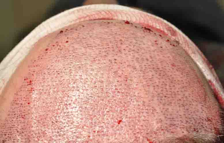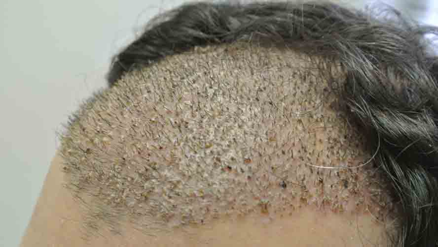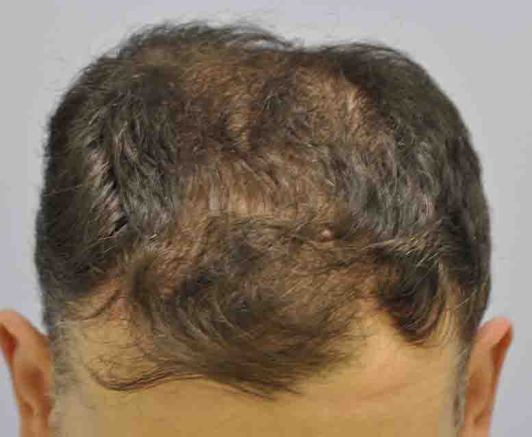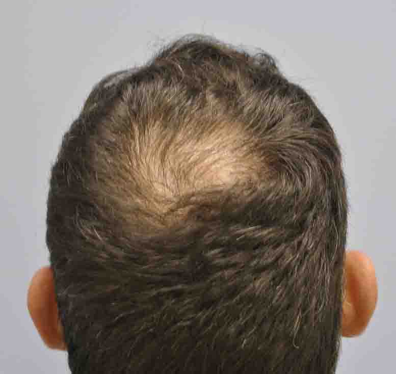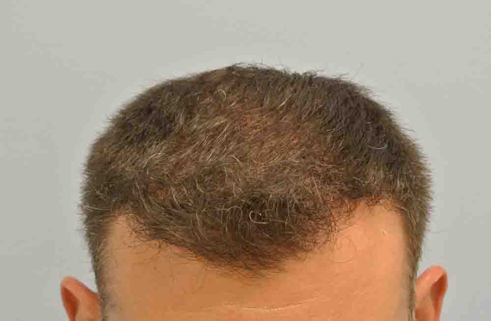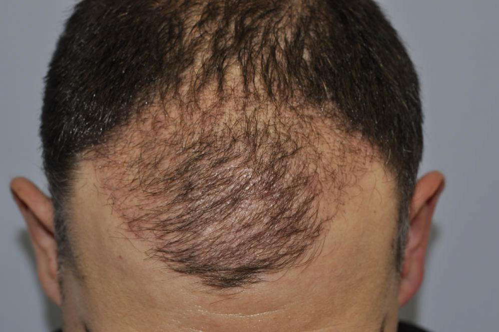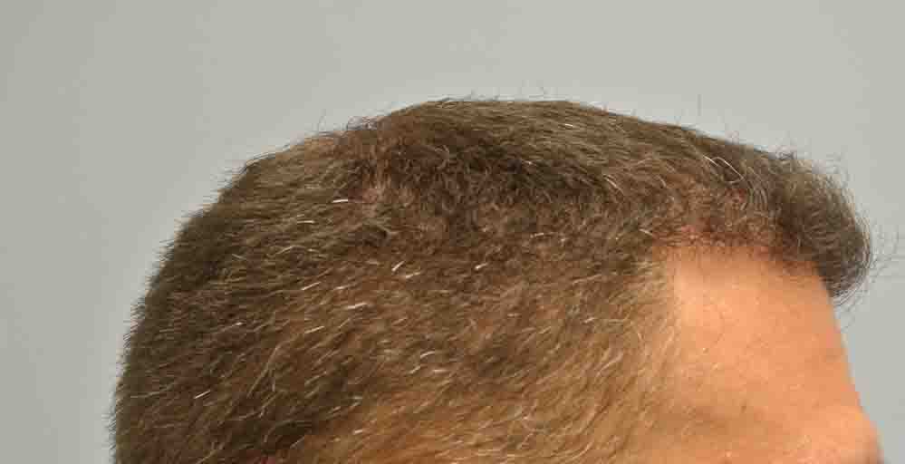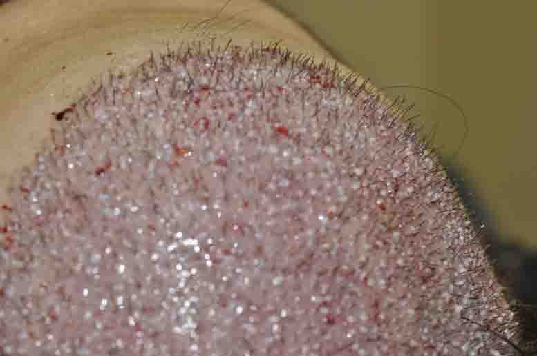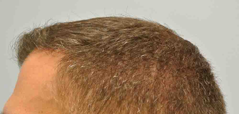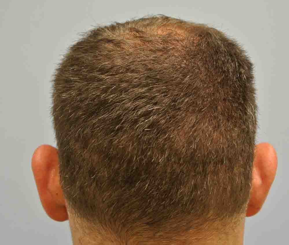 This stout fellow was thinning and miniaturizing from the front on back to the crown. We discussed working around that still quite good frontal tuft, but due to family history and a desire for a really uniform hairline, we opted to go from the hairline on back.