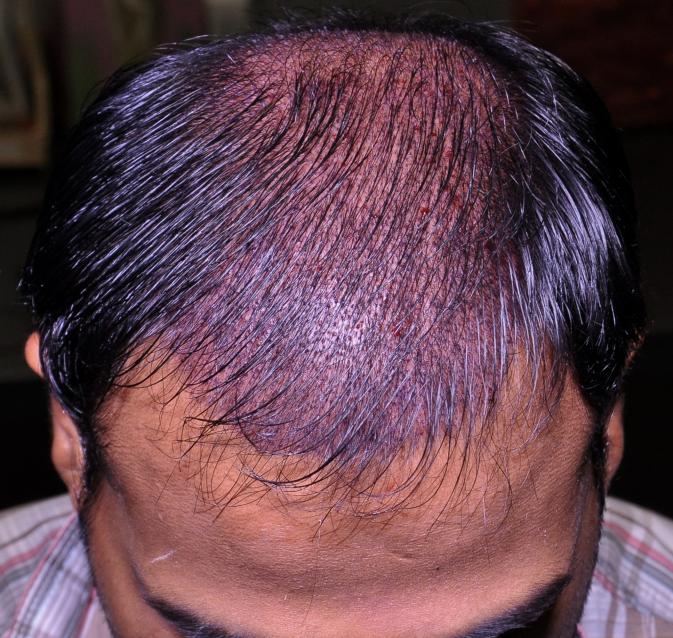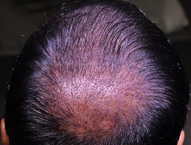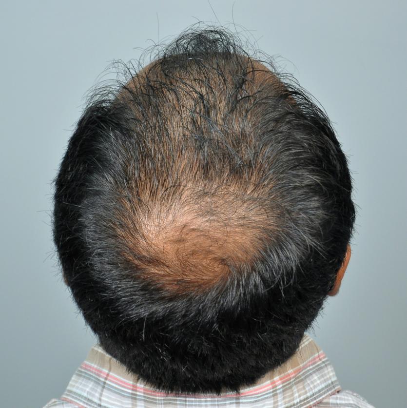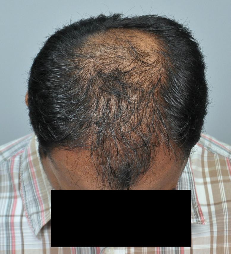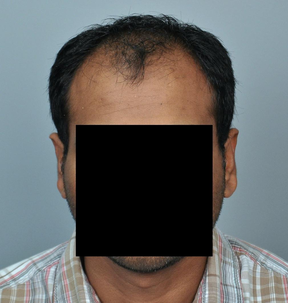 This patient was started on finasteride and had FUT consisting of 3,708 FUs (1-1217, 2-1984, 3-473, 4-34 = 6,740 hairs). We also performed PRP/ACell treatment with the FUT. He is shown 10 months later. As is often the case in my Indian and Asian patients, there was a lower #hairs/graft count compared to my Caucasian patients. This is often compensated for with better than average hair quality.