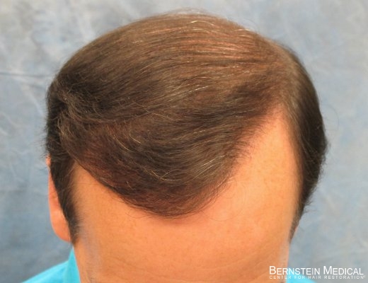 Bernstein Medical - Center for Hair Restoration Patient APL is a Norwood Class 5, with slightly wavy, dark brown, medium weight hair with a donor density of 2.3. He had two hair transplant sessions totaling 4,824 follicular unit grafts.