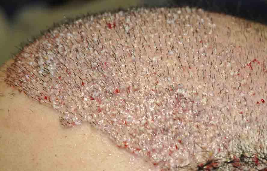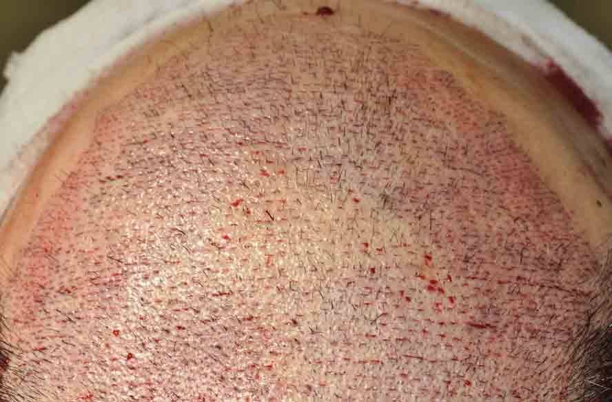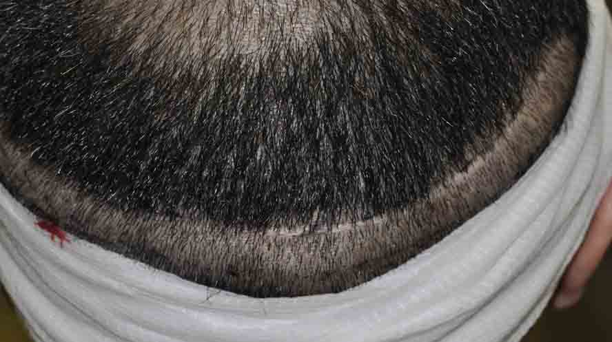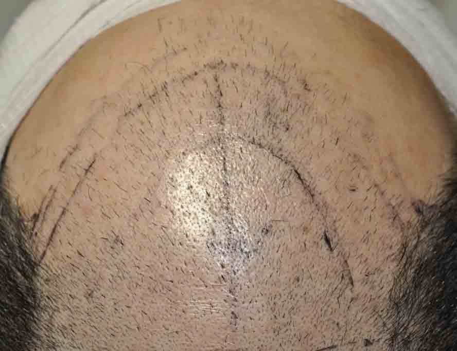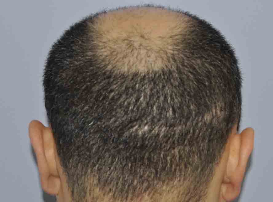 This professional had a poor experience at a large chain hair clinic. We did a 2700 graft repair case and he stopped by last week to discuss a second, or third depending on how you count it, case to address his remaining bald crown. He had a nice result particularly given his really light skin and very dark, fairly fine, hairs. Shown are day of surgery and 11 months. He works in a field where hair coverage is often part of his job. Interestingly he said nobody noticed his case but now comment how they used to think he was bald..but it “must have just been bad haircuts”.