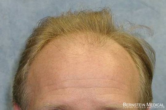 Bernstein Medical - Center for Hair Restoration Patient ABA is an early Norwood Class 5 with medium weight blond hair. Photos were taken after one hair transplant session of 1,953 follicular unit grafts. Note that some of the patient’s existing hair added to the fullness of the hair transplant producing a great result with just one hair restoration session.