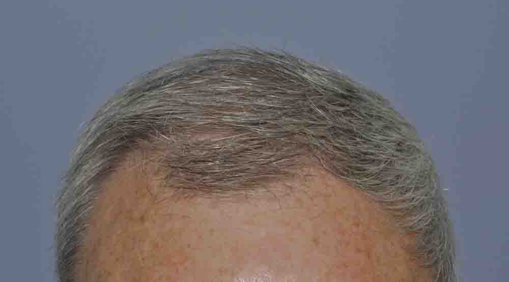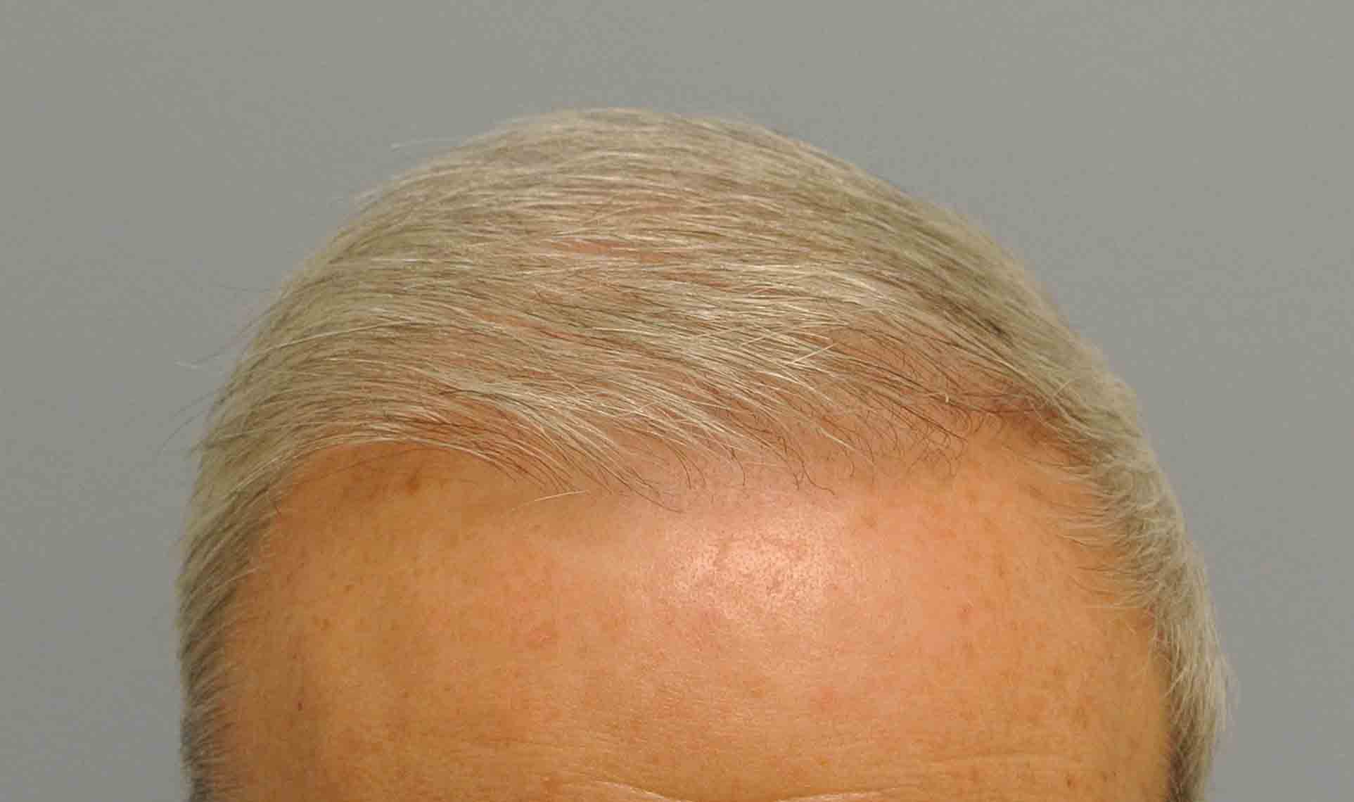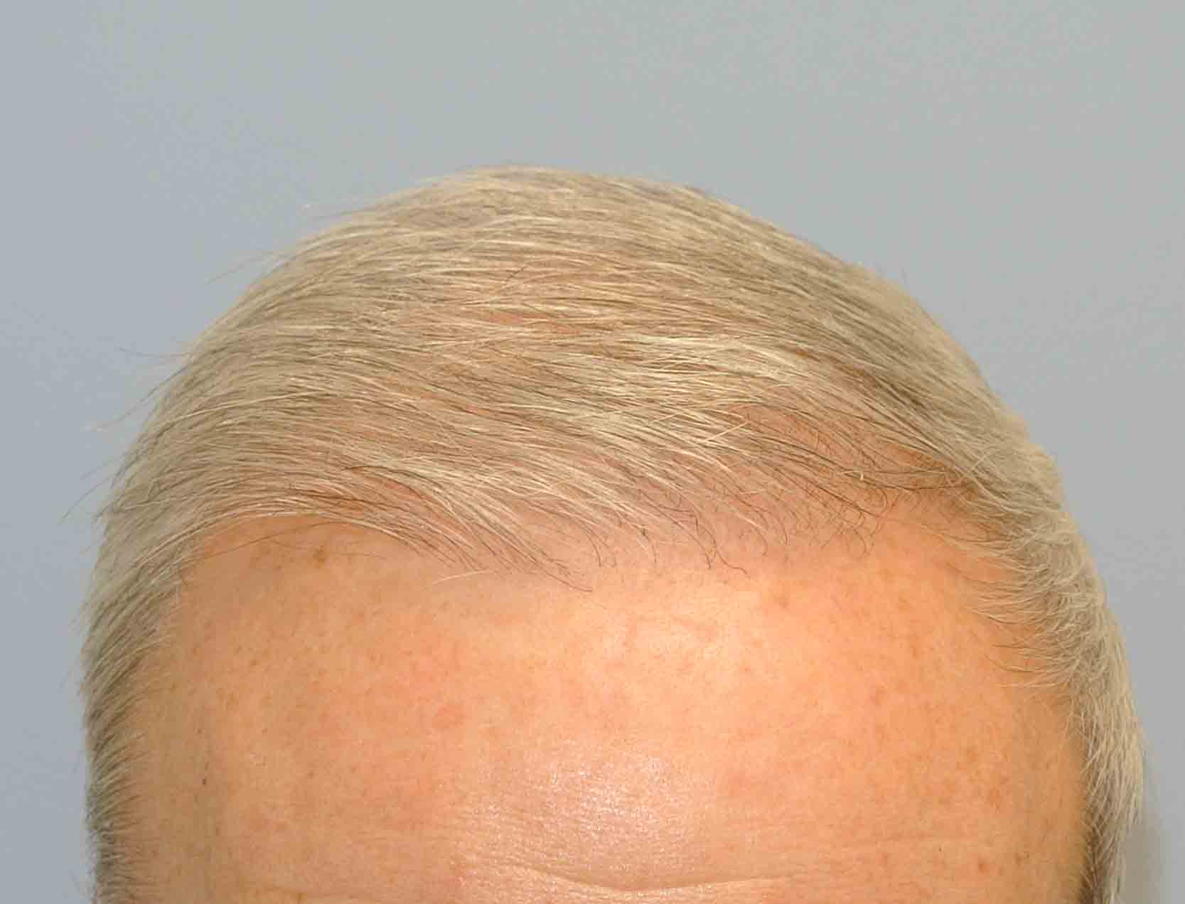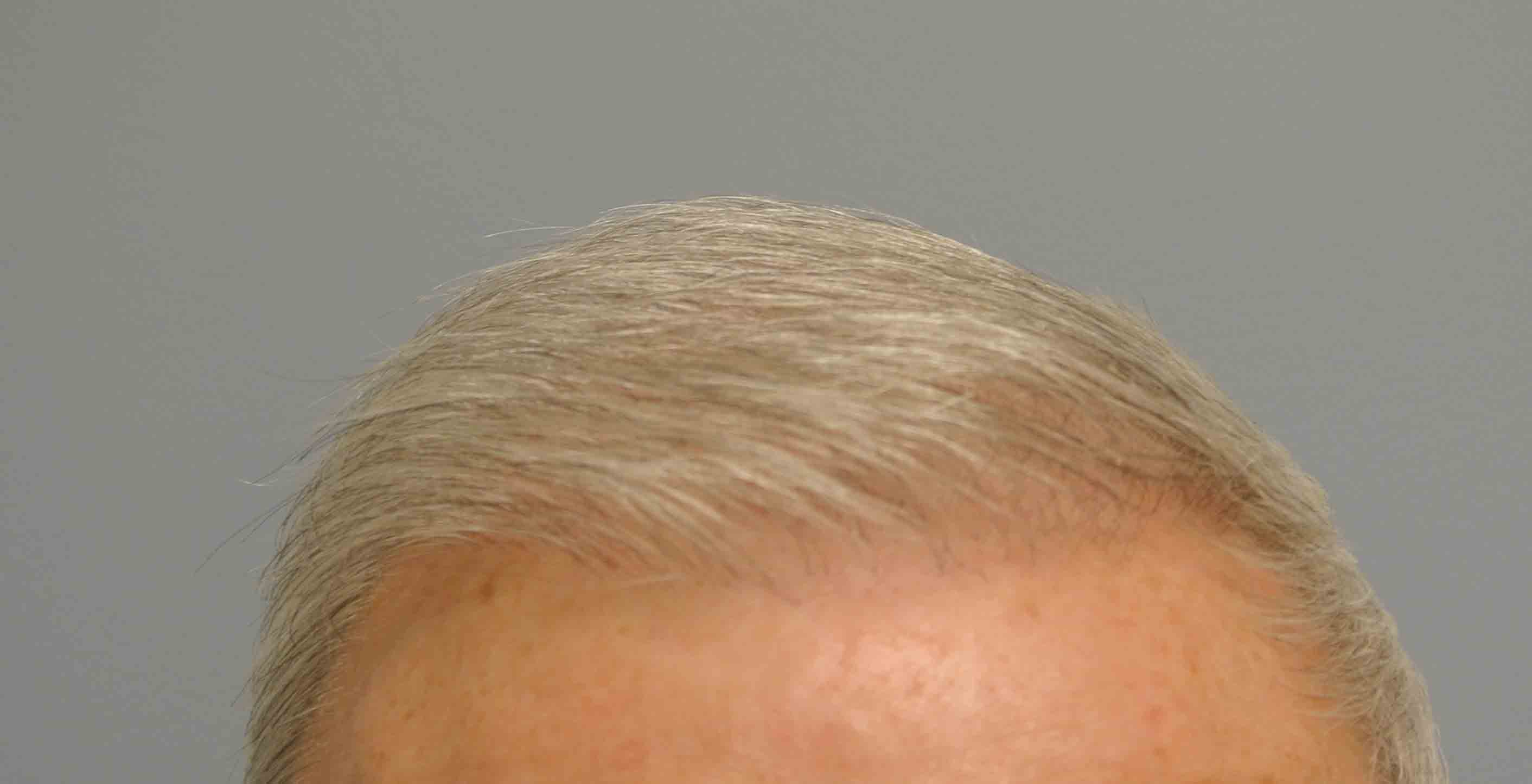 This international traveler had a 2200 graft case to address his frontal hairline. He stopped by for a checkup and to consider a second case for the crown. He appears to have a really nice, age appropriate, hairline. Shown are intraop, 1 week and 1 month scar check pictures, and current pictures. He has fairly fine hairs but despite this, his color match of skin and hair lends itself to a really nice outcome. I’m optimistic that a smaller case will finish out his crown…now I realize I’m always saying the crown is a black hole…but in a light skinned fellow with silver hair, it’s a fight worth taking.