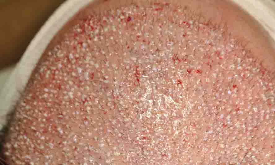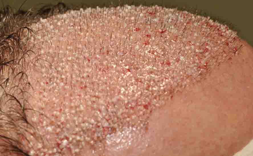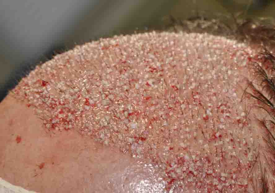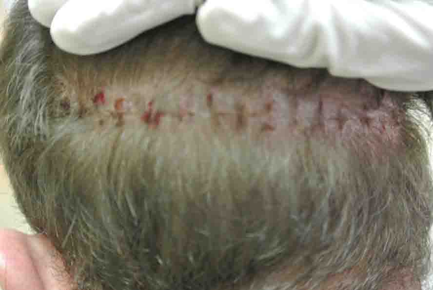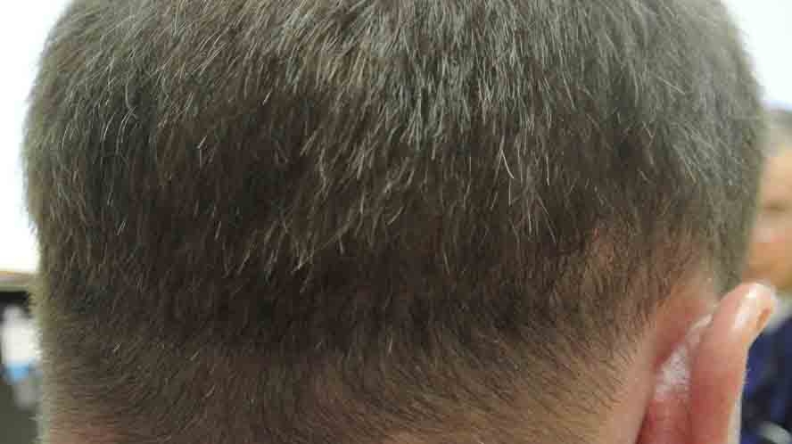 This 26 year old shopped for a few years while I put him off until he had started to declare which side of his family his hairloss pattern seemed to be following. Although I asked him to have a longer hair length to hide his scar….he is pretty independently minded and kept a short haircut and maintained his bodybuilding schedule, only missing maybe 2 days of workouts the week of his surgery (against my advice).