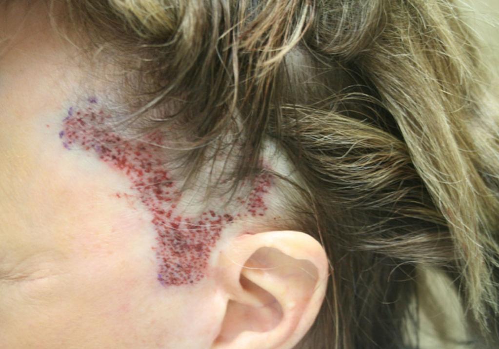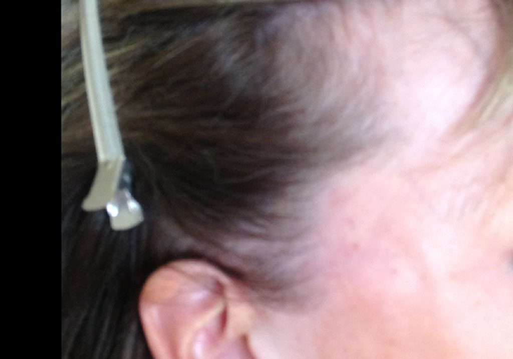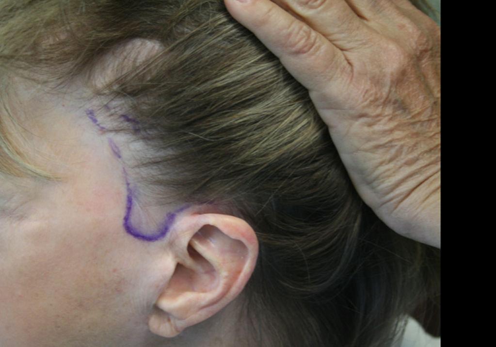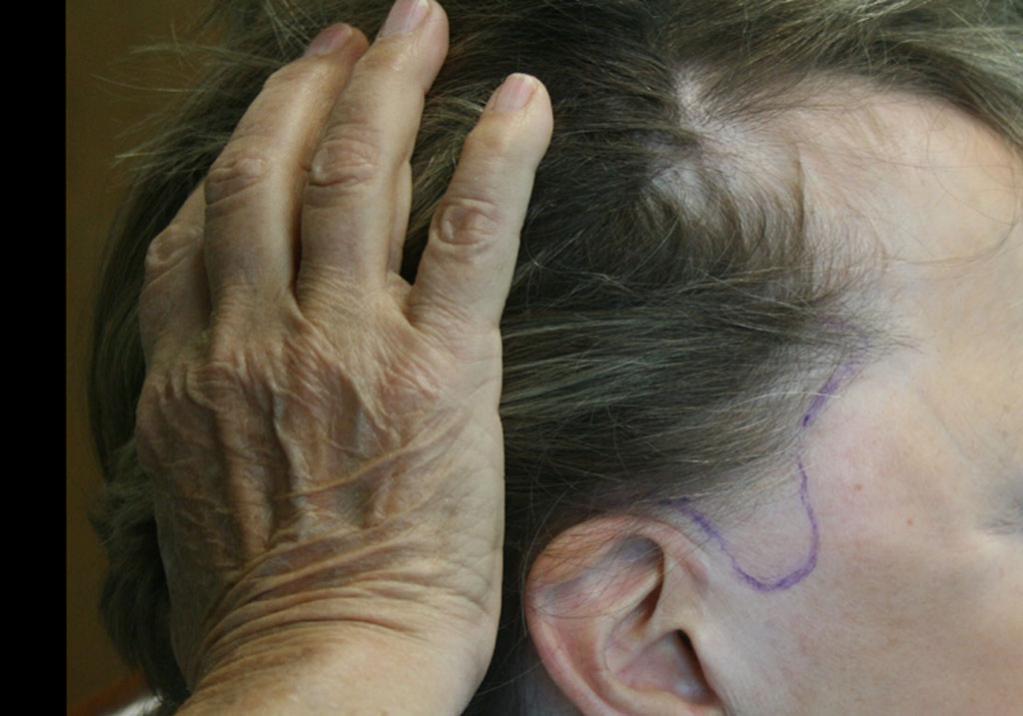 This Patient is a 67 year old female who had a facelift done previously. She lost her sideburns in this procedure. We reconstructed her sideburns and transplanted up into the existing hair along with, into the facelift scar itself. We transplanted 1341 total follicular units in the traditional strip method. 403 in single follicular units, 787 in double follicular units, and 151 in multi- follicular units. This patient sent us photos of her 1 year post operative progress. She will come in after her holiday so we can take additional pictures. We will keep updating as we get more.