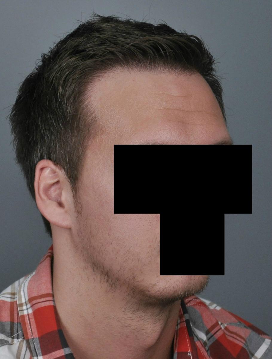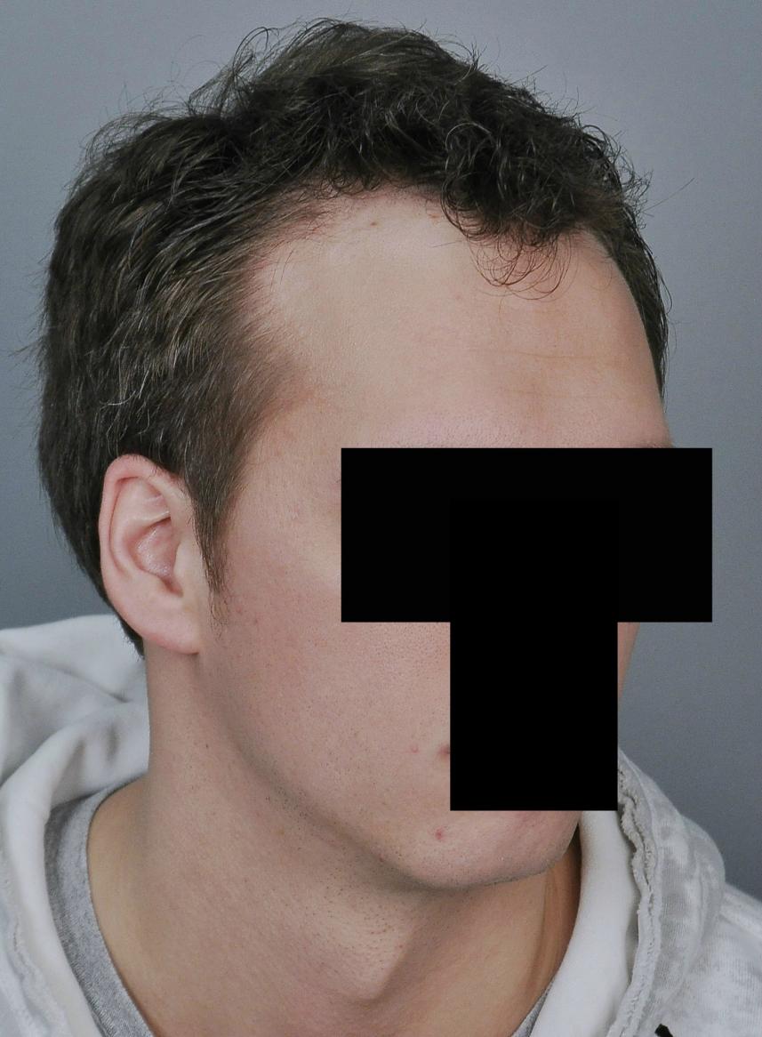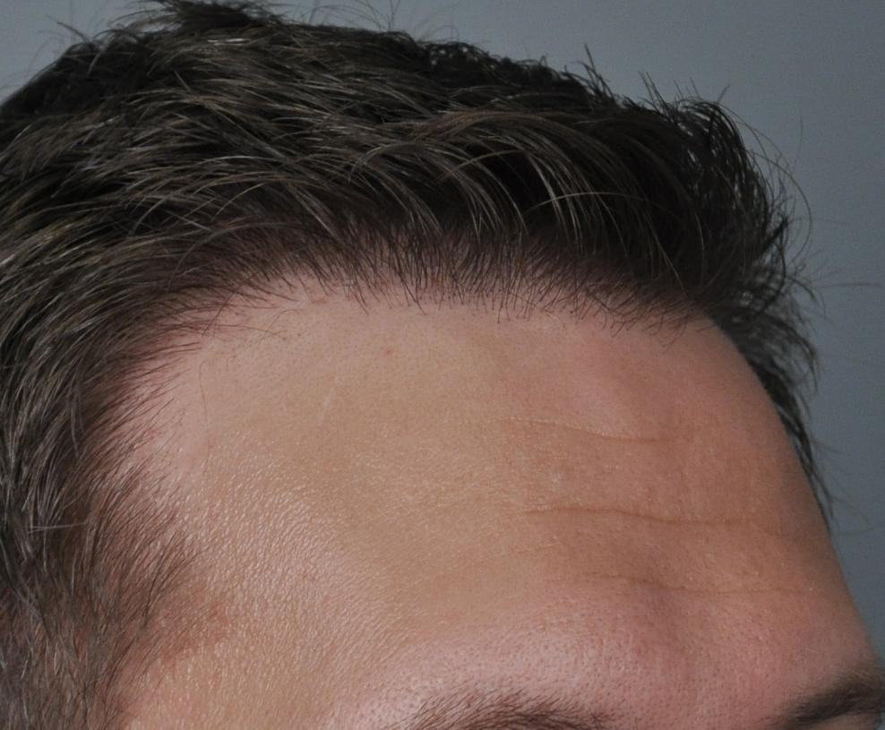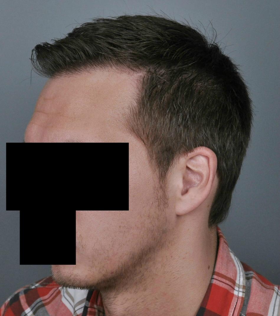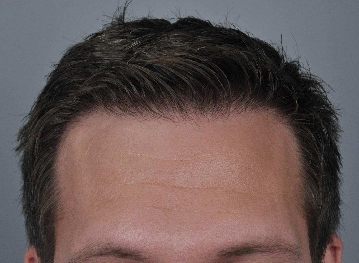 This patient came for frontal-temporal restoration. We started him on finasteride and did FUT consisting of 2,636 grafts (1-518, 2-1438, 3-680; 5434 hairs total). He is shown 17 months later.