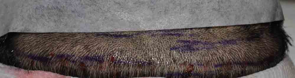 Both of the guys in these threads are virtually the same case. Each is about a 28 year old man in good health. Both have significant baldness potential in their families and both say that they realize that this is likely the first of several hair procedures to come. And both underwent a 2500 graft strip case by me uneventfully. Shown in both threads are day of surgery, 1 week, 1 month scar check, and fully grown out pictures. Neither is on meds.