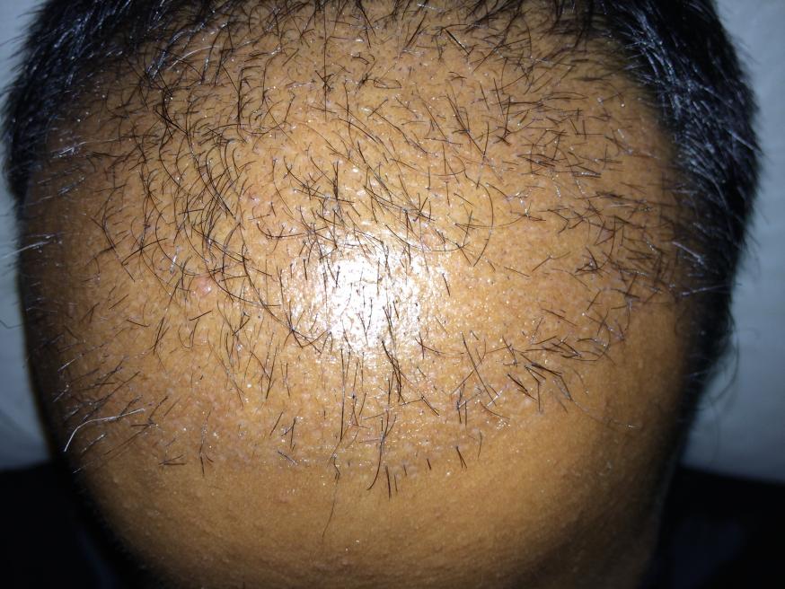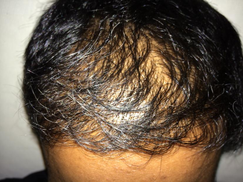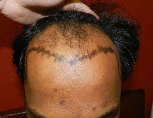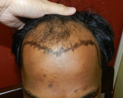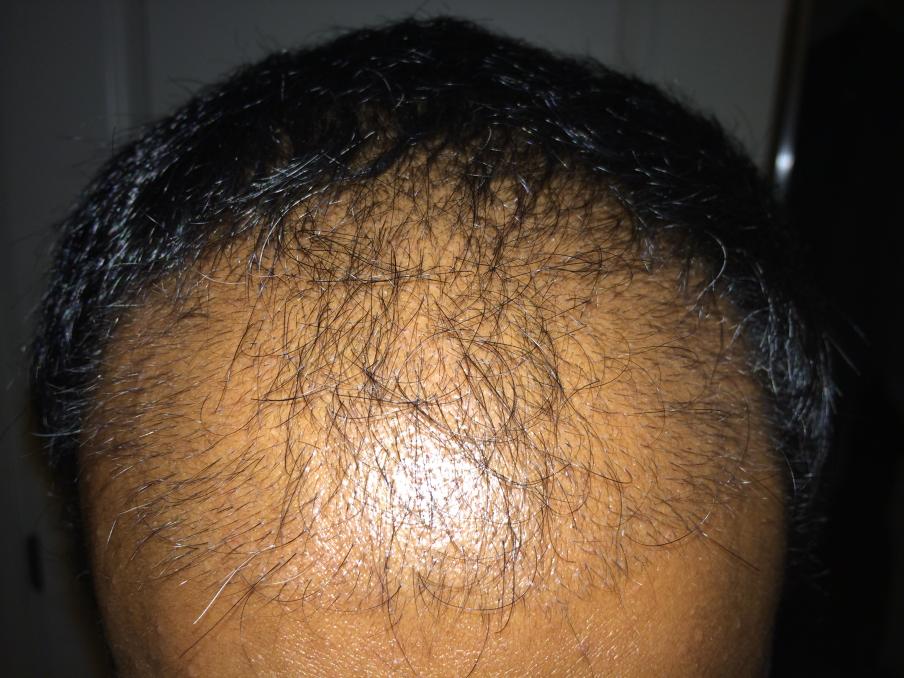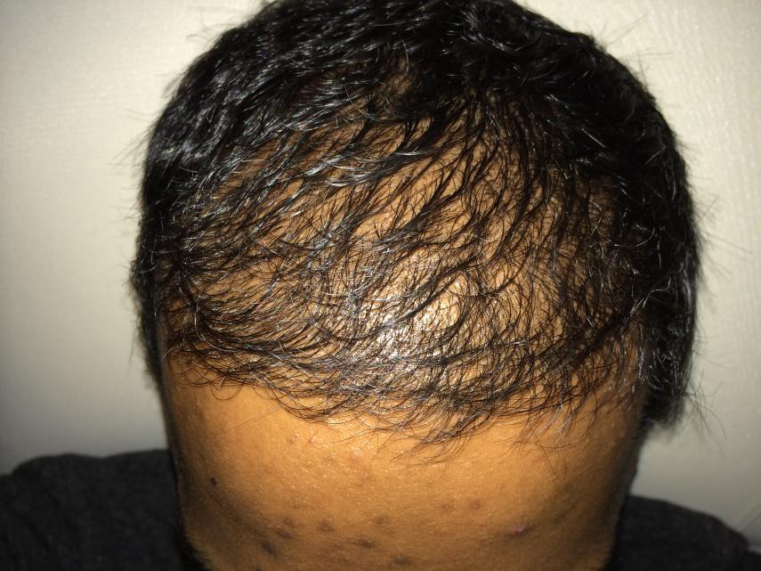 Patient is Indian American. Wanted to restore his hairline and mid-scalp.