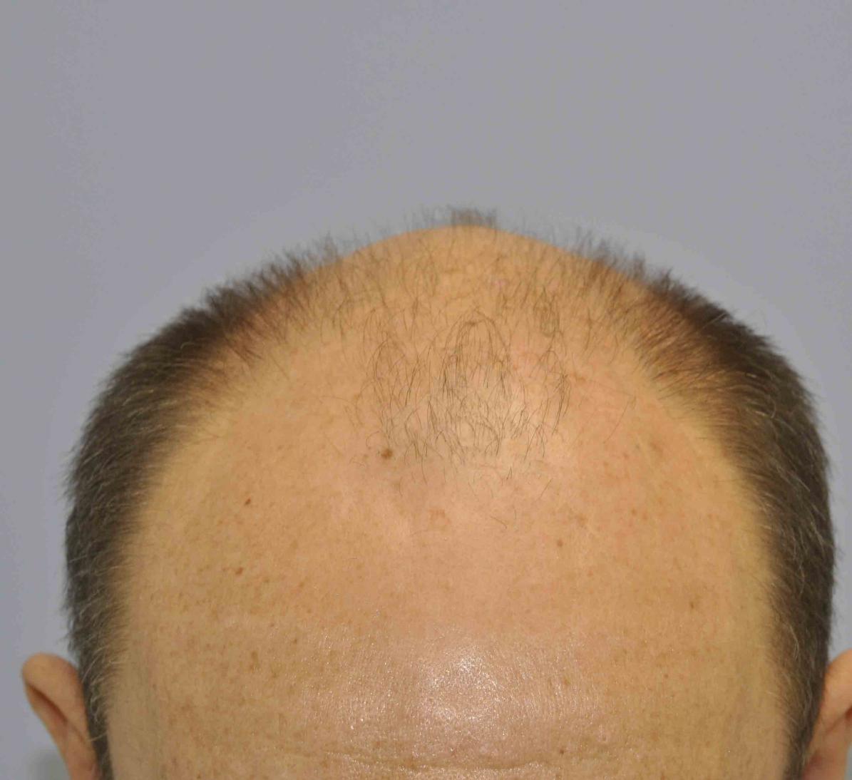 This fellow came by last week, now 2 years out from his first 2700 graft case and 1 year out from a second 2300 graft case. He really has the trifecta of very fine hairs to work with, a limited supply of hair and a lot of bald scalp, AND he likes a short haircut. Additionally he has CVG, noticed by the long creases along his paramedian scalp in the preop and 1 year pics.