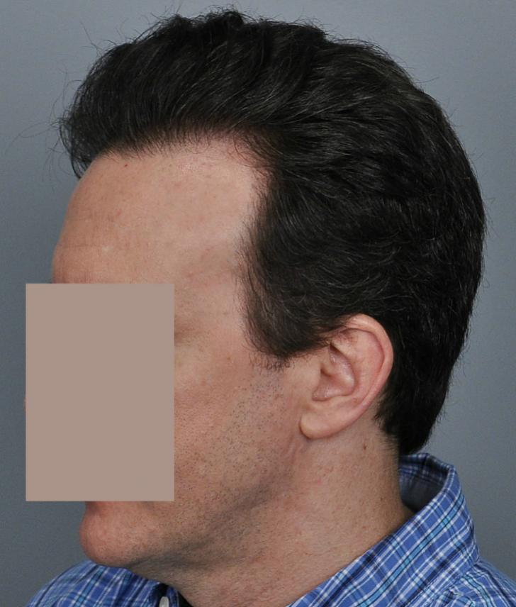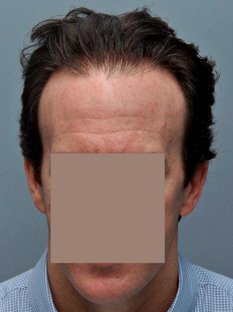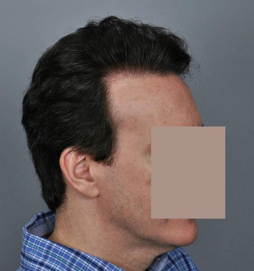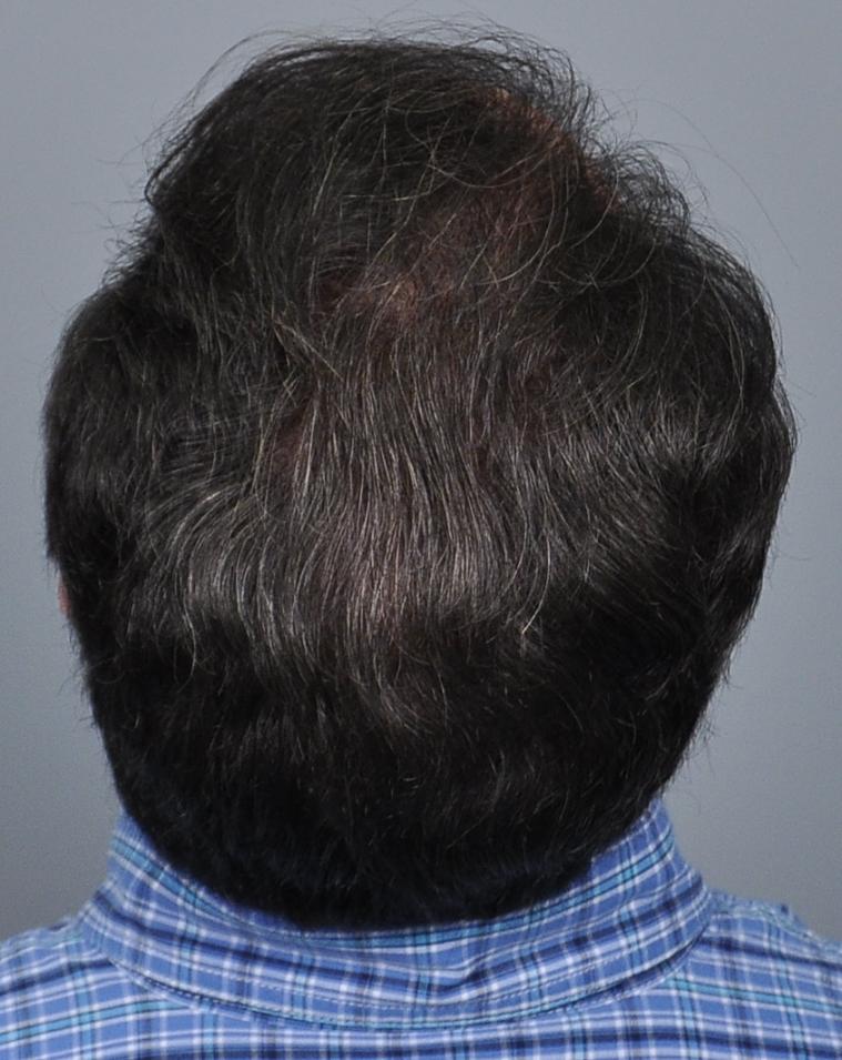 This patient is in his mid-40s and wanted to address his hairline and fill in the rest of the scalp. We started him on finasteride and performed FUT of 3,933 grafts (7,275 hairs, 1.85 hairs/graft). He didn't return until 5 years later. Overall, he was very pleased but noted that he thought his hair looked thicker a couple years prior (ie 3 years after the procedure). I explained that the grafts were not thinning but that he was seeing the natural progression while on finasteride. I see this all the time, and unfortunately patients sometimes think this means the medicine has 'stopped working'. Referring to the chart, the 'average' patient who starts finasteride will see thickening for about 5 years and then will begin to decline below where they started, but they are always much better than if they had never taken it, the difference becoming greater with every year. Options at this point include: adding minoxidil (if they are not already using it), doing another transplant, and/or doing a PRP/ACell procedure to regain some of the thickening. It is important to have an understanding of this process to set realistic expectations and make a long term plan.