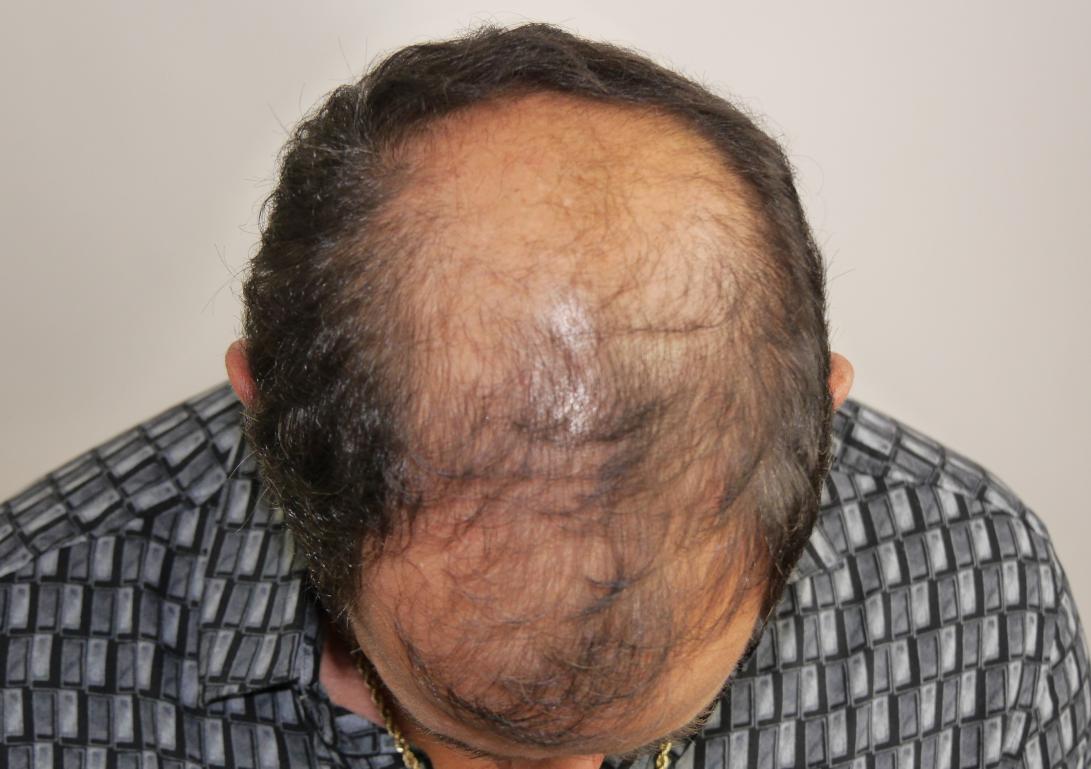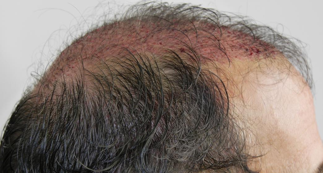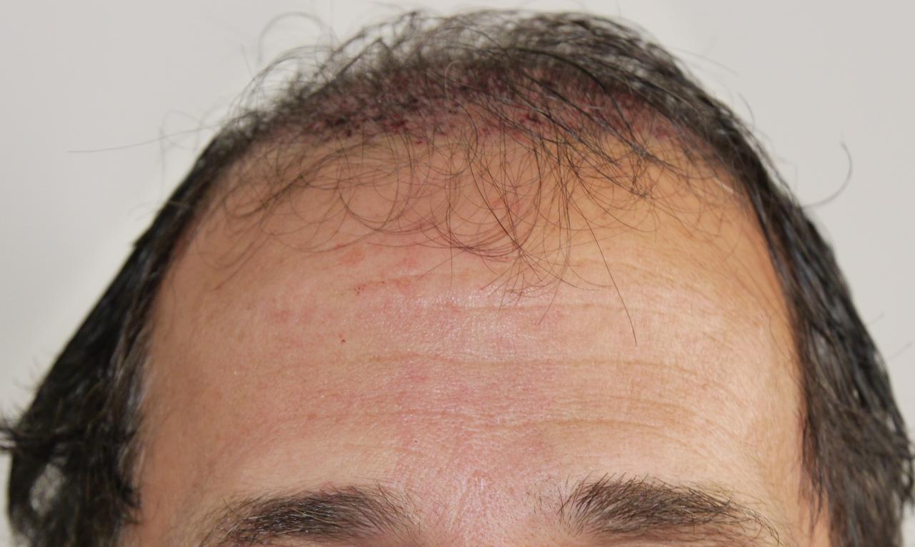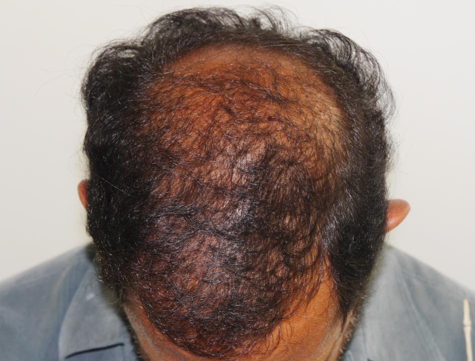 This 52 year old male had 3491 FUT grafts placed in the frontal and mid scalp region in a single session. The photos show the patient before surgery, immediate post-op, and 6 months post-op. Patient is extremely pleased with results.