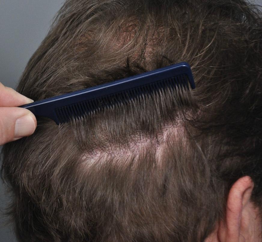 This patient is in his mid-50's with 4A hair loss pattern and wanted to restore his frontal zone. We started him on finasteride and performed 2,682 graft FUT (1-877, 2-1156, 3-540, 4-109; 5,245 hairs). He is shown 16 months post op. He healed very nicely and the donor scar was almost undetectable.Tags: None