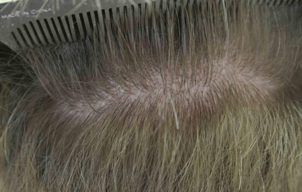 In the video I have a still of his donor area. Contrary to many marketing schemes, this shows FUE is not scarless surgery! Rather there is no linear scar, but each and every FUE attempt does leave a small scar.