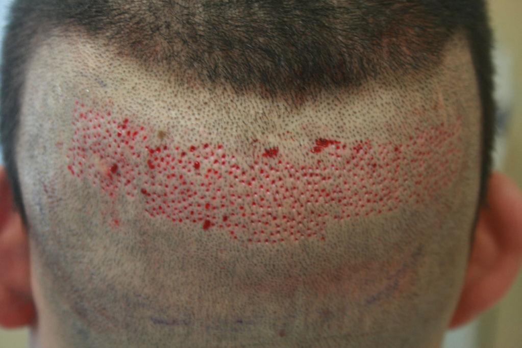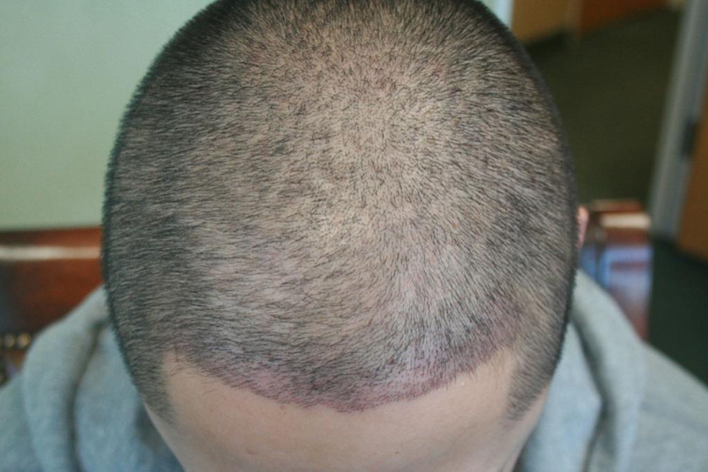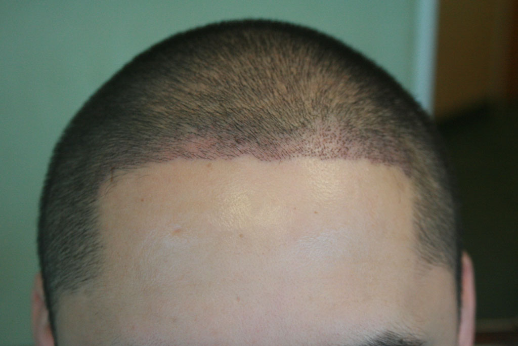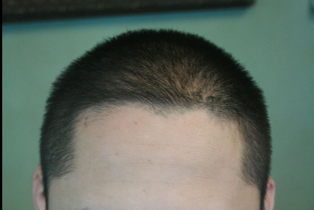This Patient had an irregular hairline that he was not happy with. He would shave his hairline until it was a straight line. He was very self conscious about this. We preformed an ARTAS FUE and he recieved 648 grafts to correct the front hairline. We will update his progress when he returns for future post operative appointments. Acell was also used in this case. He is only 1 week out from surgery and you can see how clean it looks at just after 7 days.