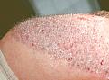 We excised a plug-scar filled strip and packed his front. He emailed in pics at 7 months and the other day at 10 months. Many of you all know that particularly in these plug repairs, the scarring slows growth down so that it takes 18 months to get a nice result. He's growing quickly and his wirey bushy hair helps. Just wait til another 6 months pass. He lives a few hours away and says he'll get by this summer for pics and hopefully a video, and hopefully a second case to work behind his nice new front.