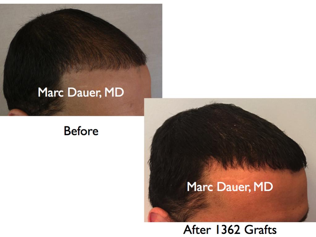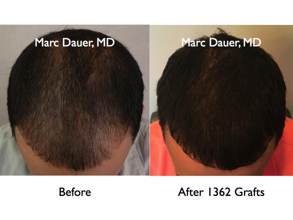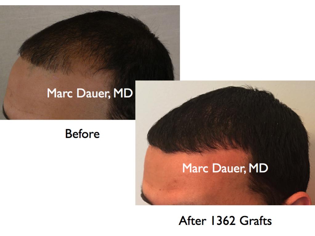Here is a patient of mine who received 1362 grafts via FUE to the frontal and mid scalp to increase the density throughout.
