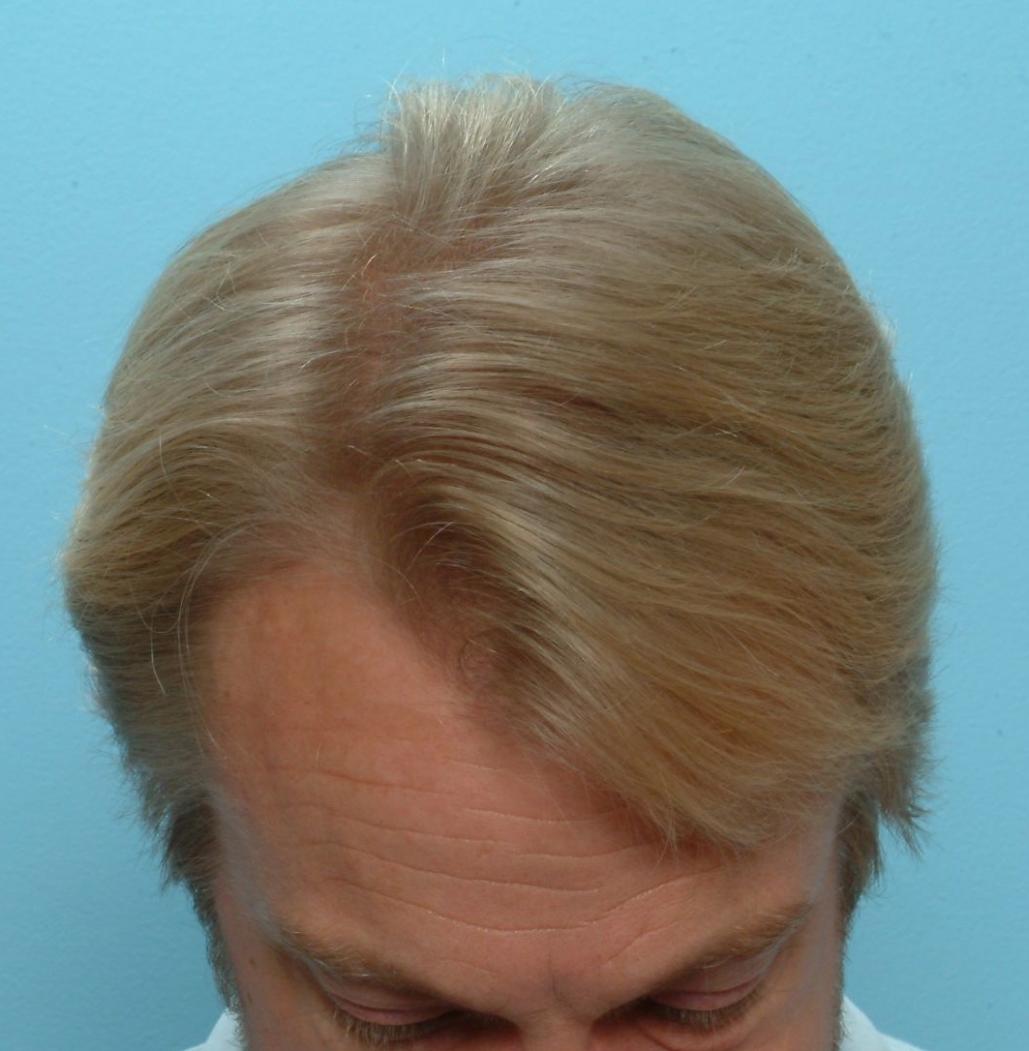 2 consecutive day procedure performed using 3110 FUE grafts to midscalp and frontal forelock. Patient is stable on finasteride. Extractions performed with 0.8 mm sharp punch and Hans Lion Implanters for placement. All grafts extracted and placed by the physician.