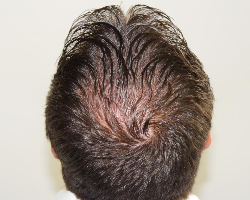 Pictured is a 35 year old male who had 2063 FUT grafts placed in the frontal corners and crown during 1 session. The photos show before surgery, immediate post-op, and 1 year post-op. The patient is very pleased with results.