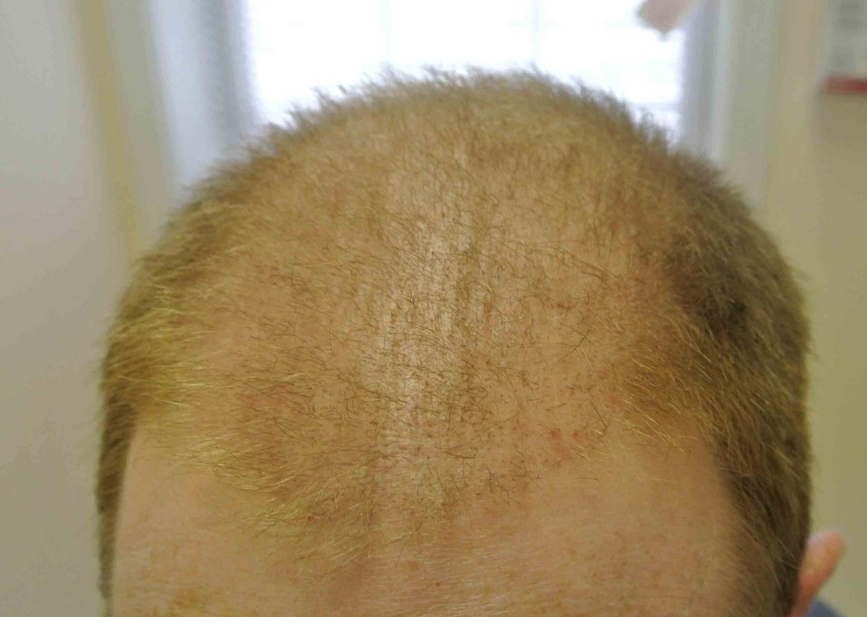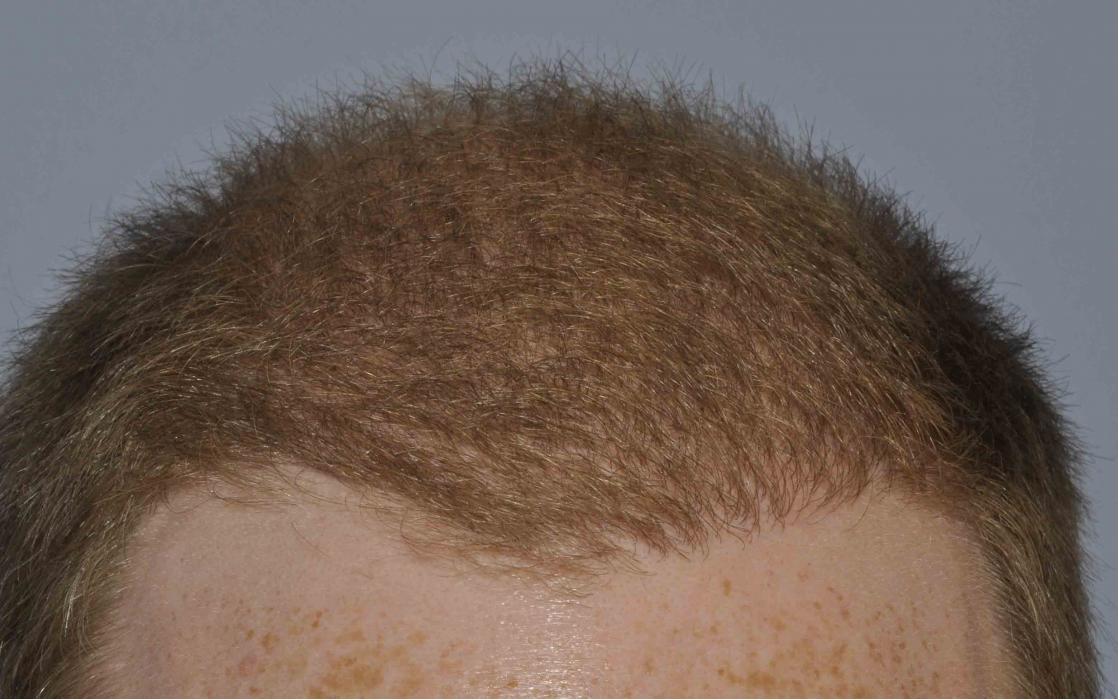 This fellow popped in the office exactly 6 months out yesterday. While he had some hair in his frontal third preop, it wasn't much and its length helped with layering. He's from a long line of class 6 guys and refuses meds.