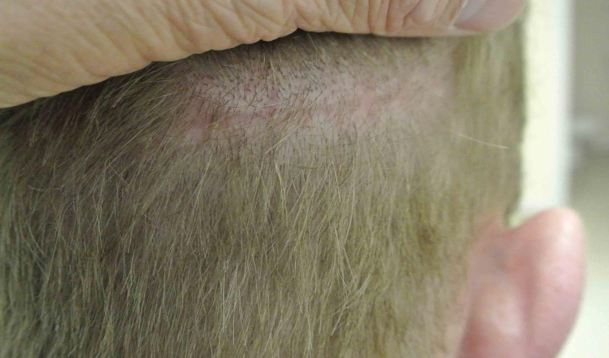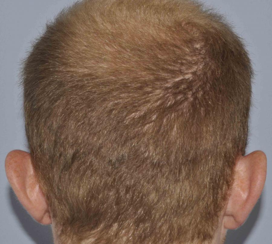 Shown are operative, 1 month scar check, and 6 month pics. Even without long hair for layering, he looks great and will really be grown in by Christmas. His scar looks good, and this short video shows his result thus far. However his crown has gotten significantly thinner...we'll be back to do a second case sooner rather than later I suspect.