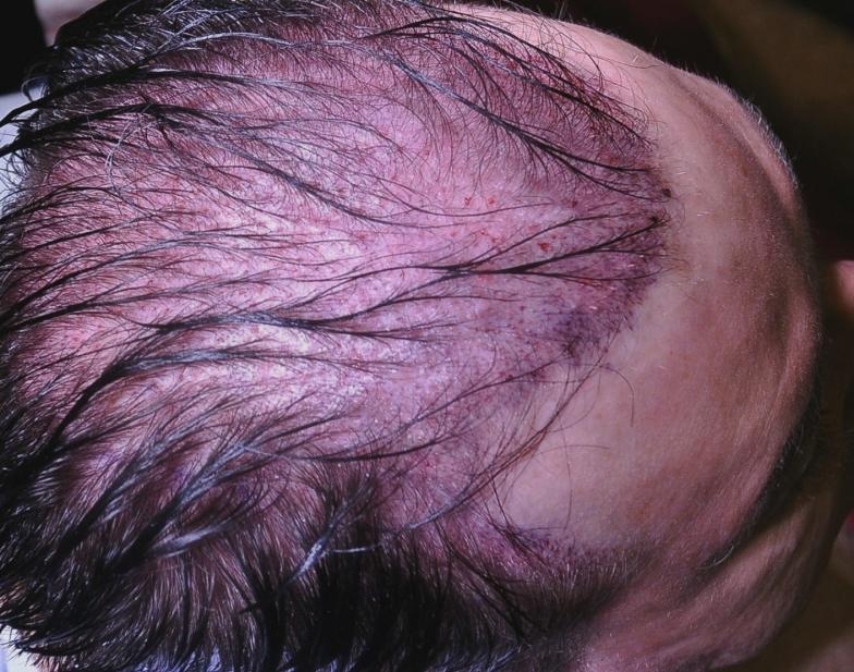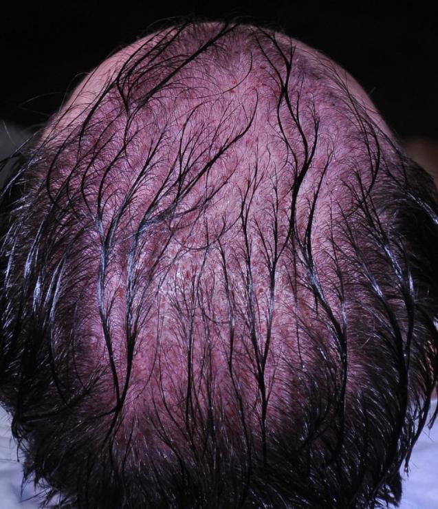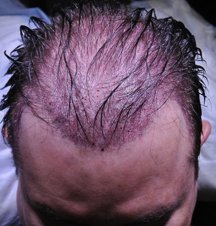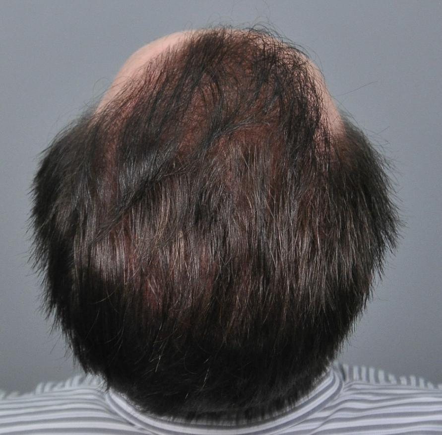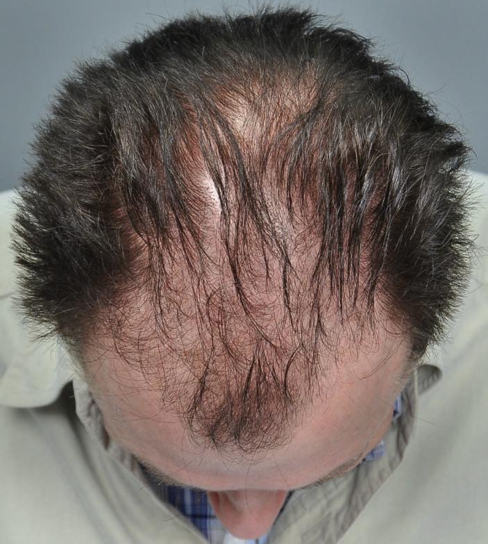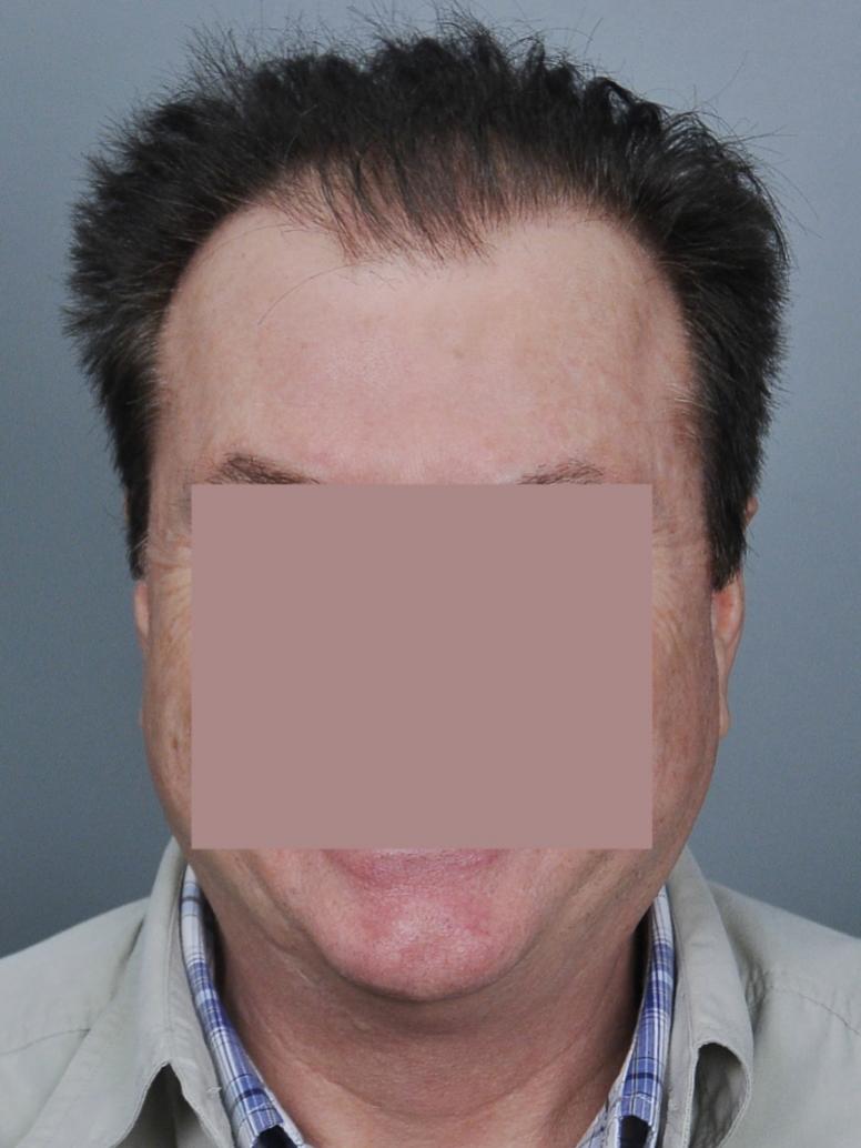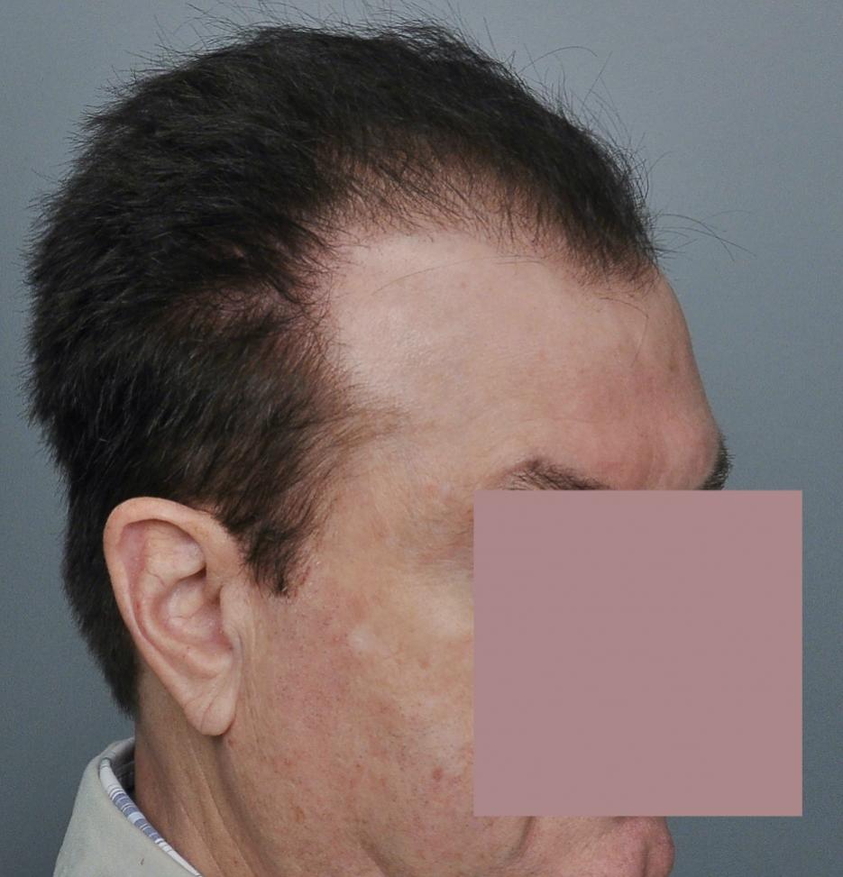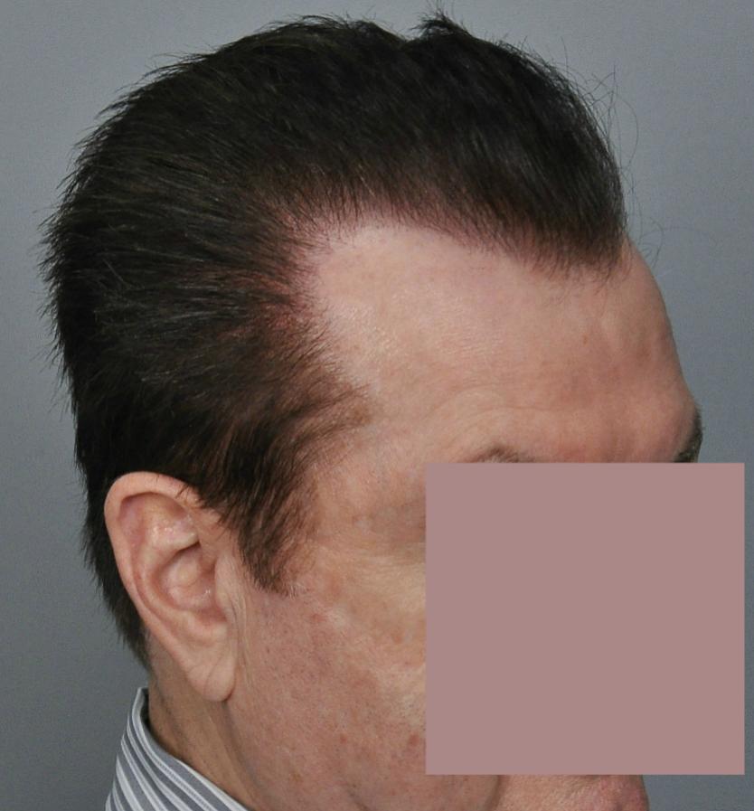 This patient is in his early 60's and has been on finasteride for many years. He had a hair transplant about 10 years prior of about 2500 grafts. His donor was not that great. We performed FUT of 3,315 grafts (6,252 hairs) and PRP/ACell. He is shown 15 months later. His grafts grew in well and there was a nice thickening effect from the PRP/ACell. He may come back to fill in the fronto-temporal corners a little. As usual, we did not shave so the patient could return to work in 7-10 days.