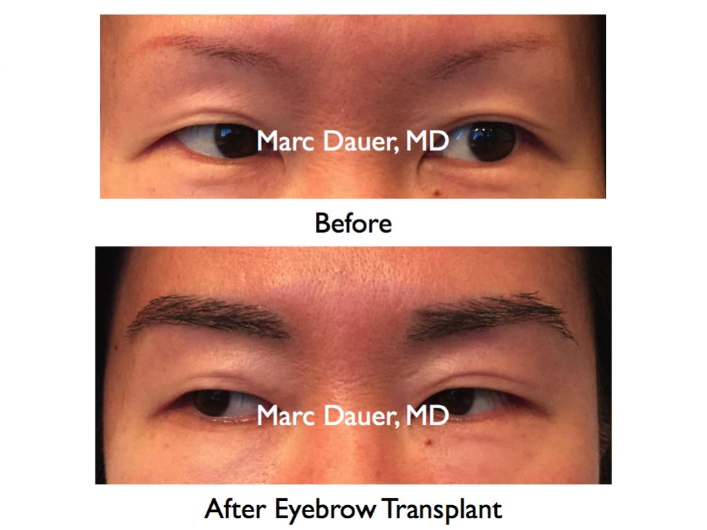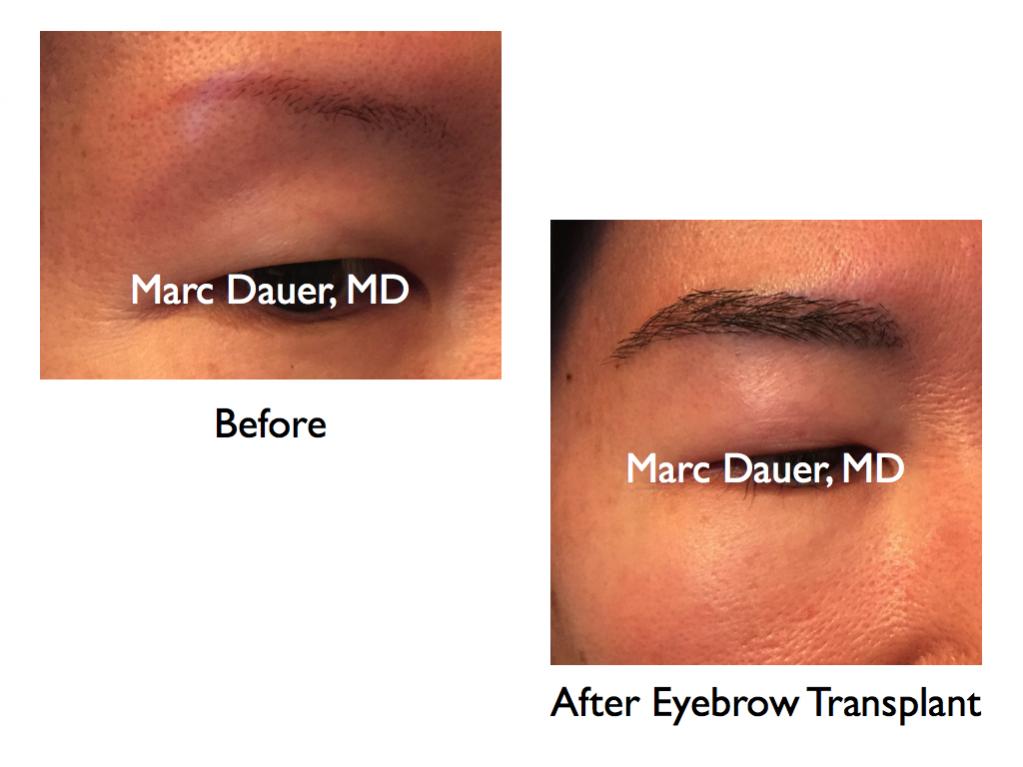 Here is a patient of mine who received approximately 380 grafts per eyebrow via FUT. The results are shown after 6 months and there is no eyebrow makeup in the photo.