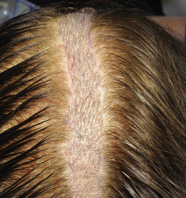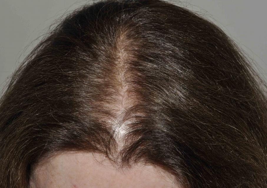 I do think her hairline has thinned a bit where we didn't work, but she isn't worried about it at this point. I suspect we'll see her regarding another issue this fall and follow along her hair for the long term.