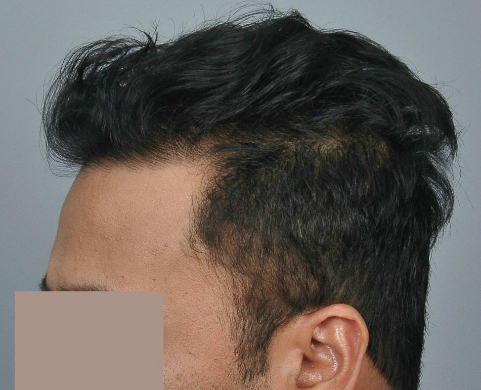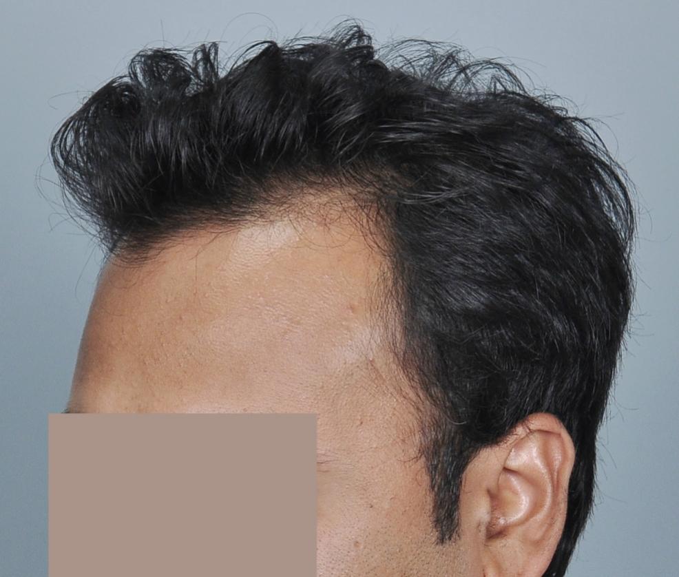 This patient is in his mid 30's and wanted restoration of his frontal hairline including temples. There was no thinning in the crown. We performed FUT 2,664 grafts (4,581 hairs). He is shown 13 months later.