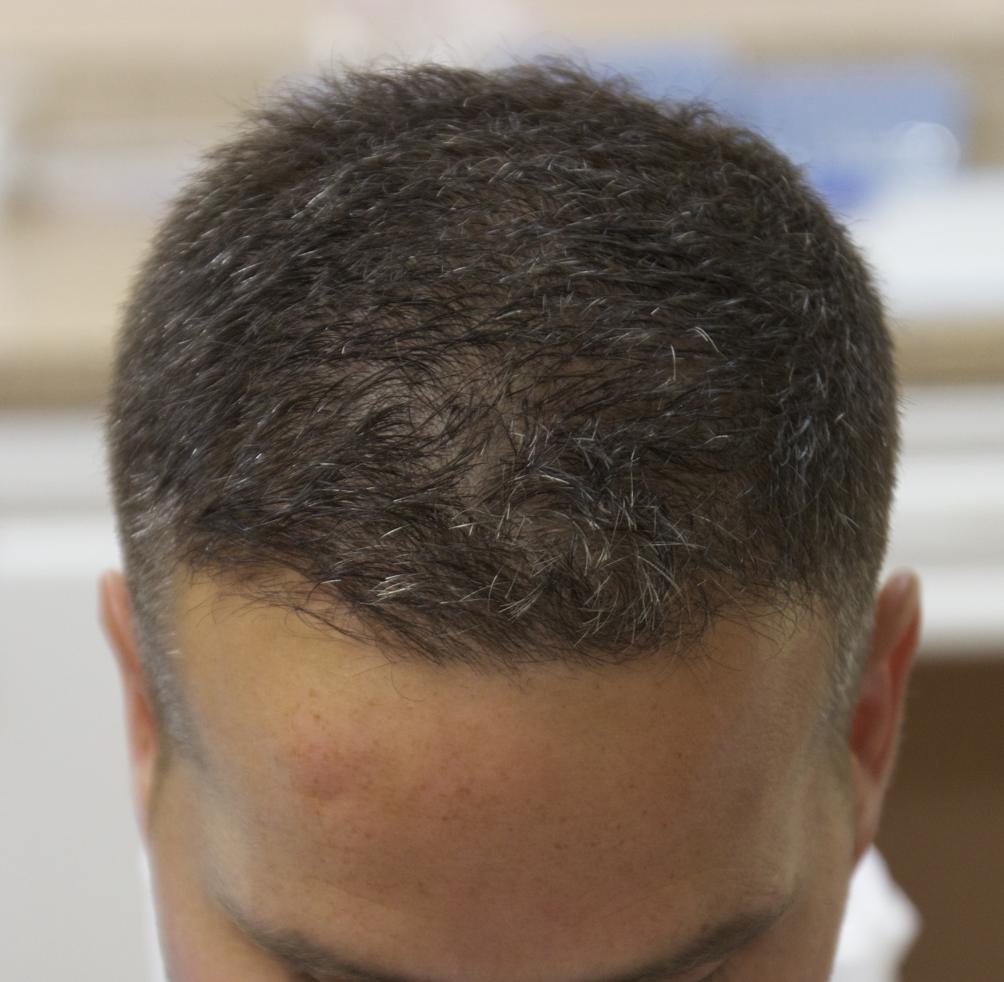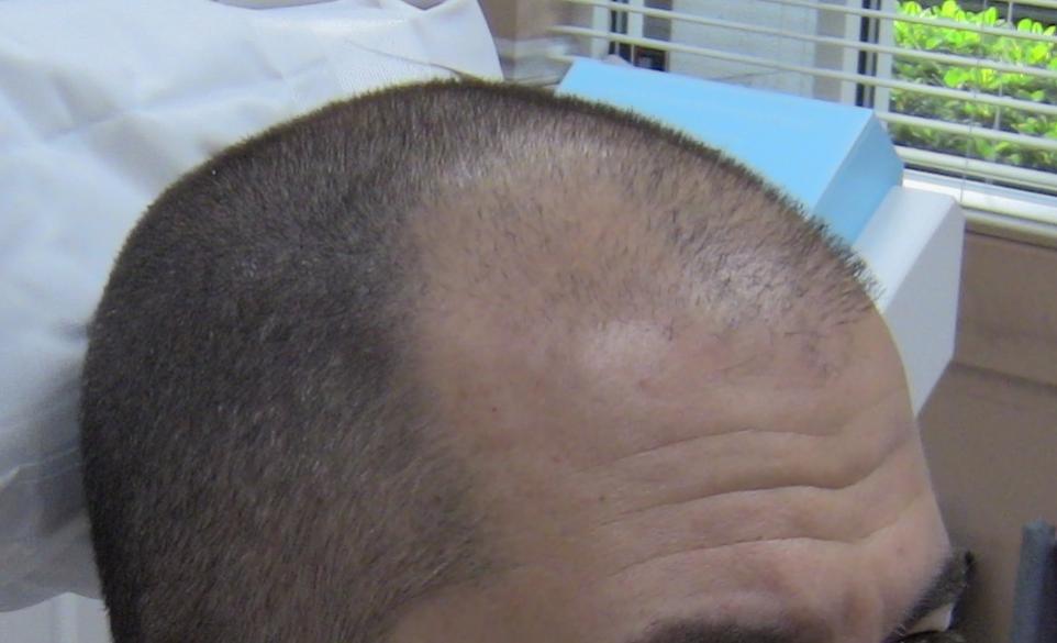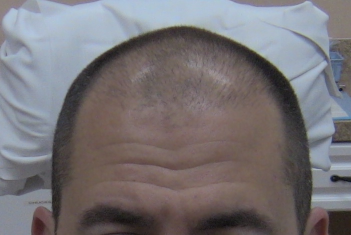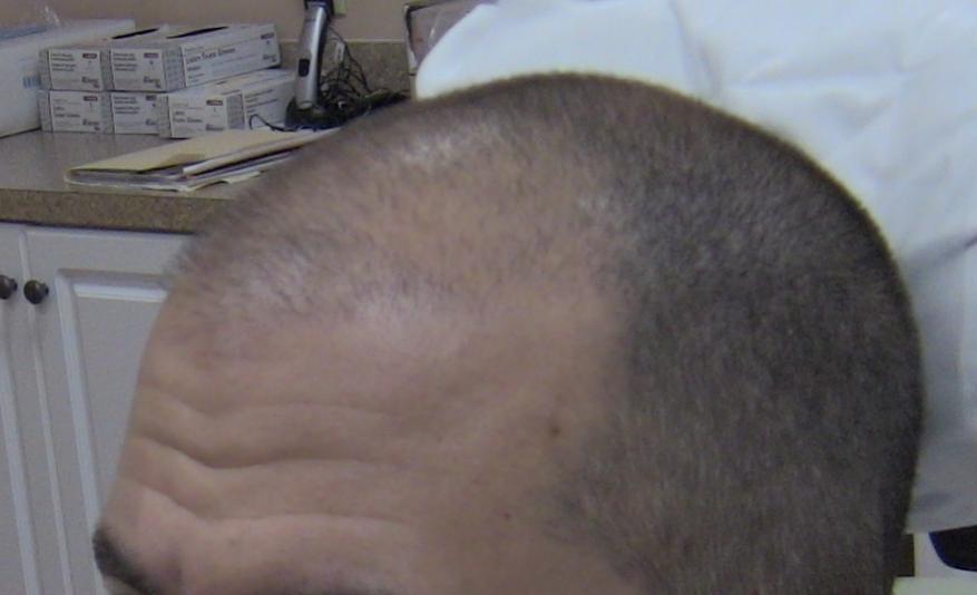 This is a patient who came in to our office 6 months post-op after receiving 2500 FUE Grafts in a one day session. He has had a very good response to finasteride, which is responsible for the reversing miniaturization in his midscalp and vertex.