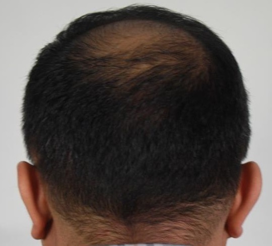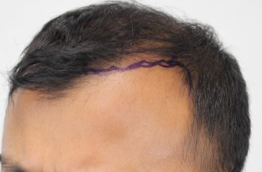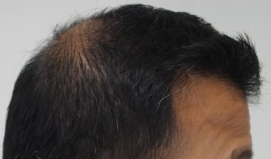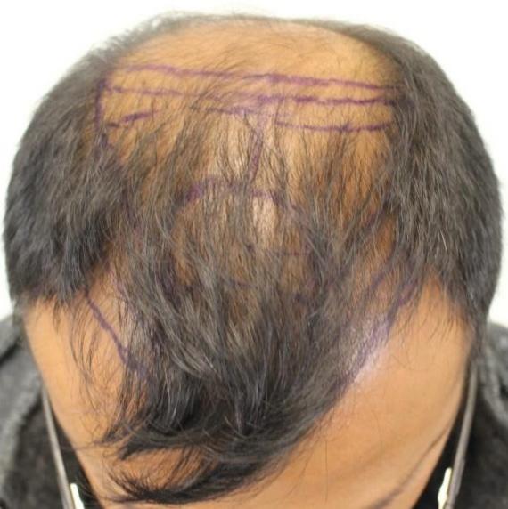 After trying different medications, this patient came to Dr. Rahal in his early 30s looking for a better solution for his receding hairline and thinning crown. Dr. Rahal transplanted 4862 FUT grafts (9687 hairs) adding coverage from the hair across the top of the head.
