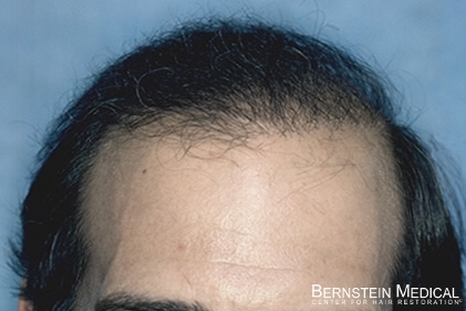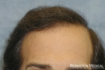 Bernstein Medical - Center for Hair Restoration Patient URQ is a Norwood Class 6 with straight, medium-fine, dark brown hair of average density. Results after three hair transplant sessions totaling 5,620 follicular unit grafts. Note the dramatic change in appearance, and natural look, after just one session. A second, smaller session was performed to increase the density, especially at the frontal hairline. A third hair restoration session added the finishing touches.
