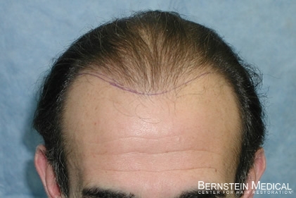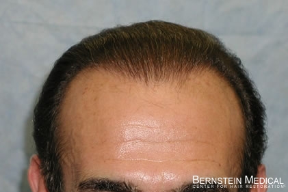 Bernstein Medical - Center for Hair Restoration Patient CJD is a Norwood Class 6 with black, wavy, very fine hair of high density. Results after 4,037 follicular unit grafts accomplished in two hair restoration sessions.