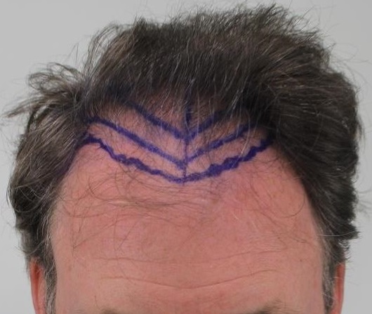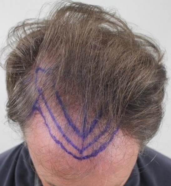 This patient saw Dr. Rahal in his mid-40s with complaints of thinning at the front of his scalp. Dr. Rahal used 2509 grafts (totalling 5262 hairs) to create more density along the front and better frame the patient's face.