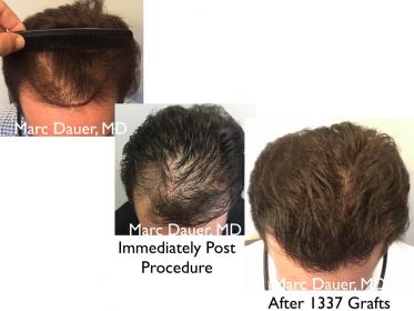 Here is a physician Dermatologist patient of mine who was experiencing thinning in the frontal scalp and received 1337 grafts via FUT.