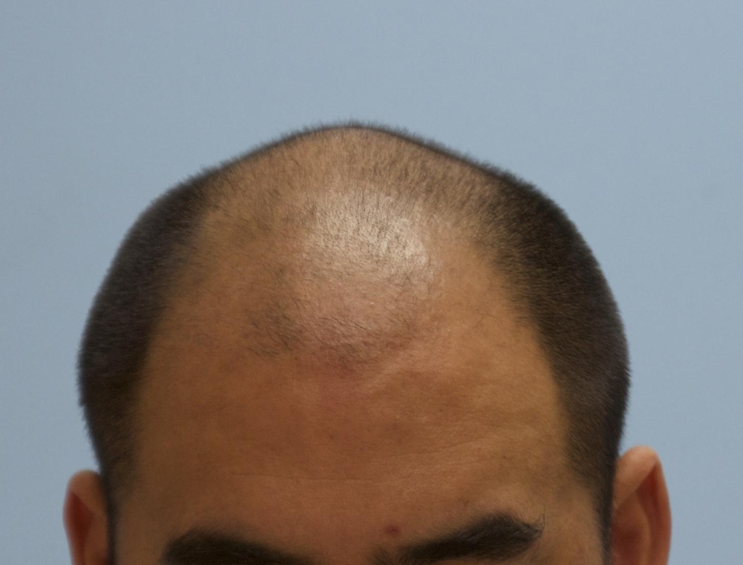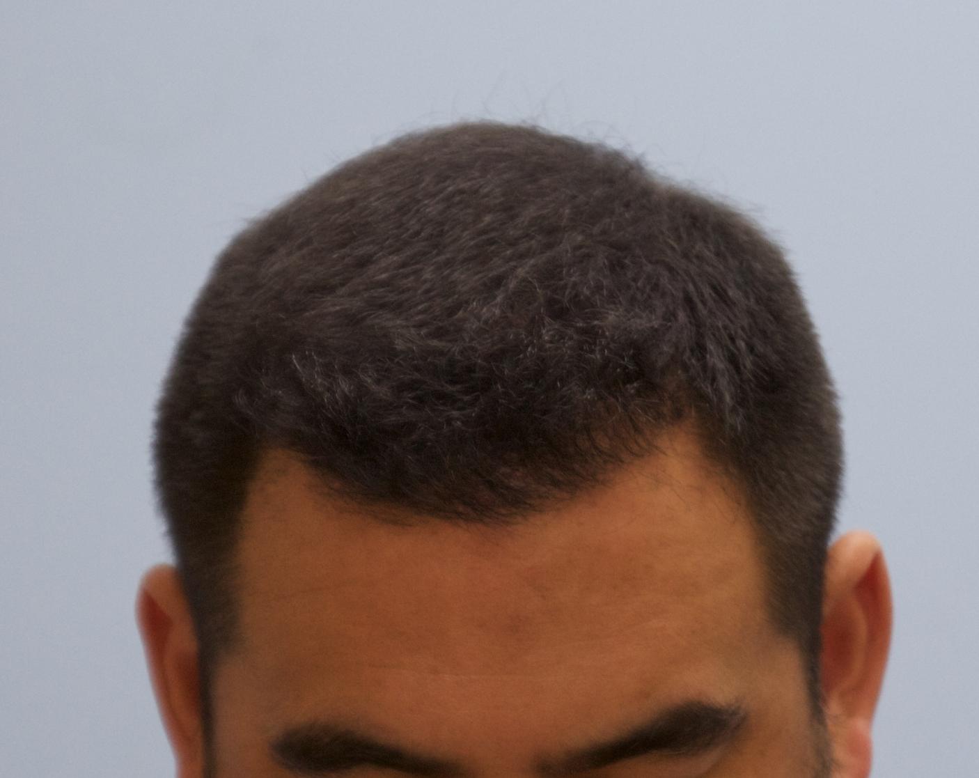This 38 year old patient came into the clinic today after receiving 6000 FUE grafts over a two consecutive day period. Very good hair caliber led to good coverage, especially in the crown. A 0.85 mm serrounded punch was used for harvesting, with grafts placed with Hans Lion Implanter Pens. All grafts were harvested and placed by Dr. Vories.