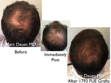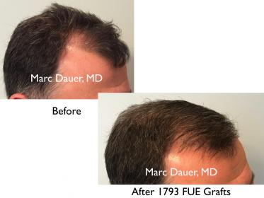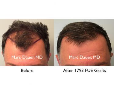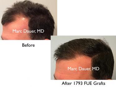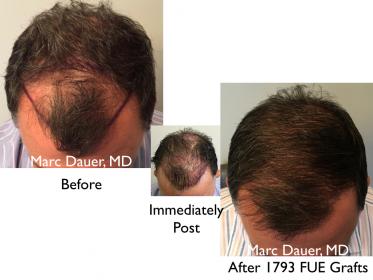 Here is a patient of mine who received 1793 grafts via FUE to the frontal scalp and crown. The grafts were harvested by me personally using a 0.8mm serrated motorized punch. The patients opted for a conservative number of grafts. Despite the relatively moderate number of grafts for 2 areas of significant size the results are clearly evident and the patient is thrilled.