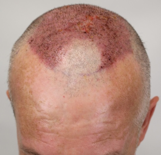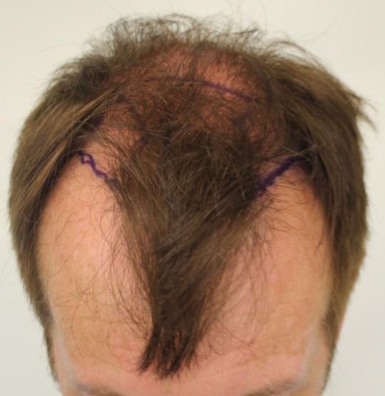 Please note: The patient's hair was coloured to allow easier visibility of the grafts during his procedure.