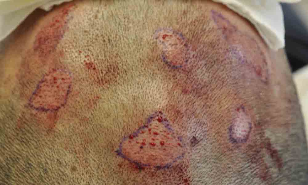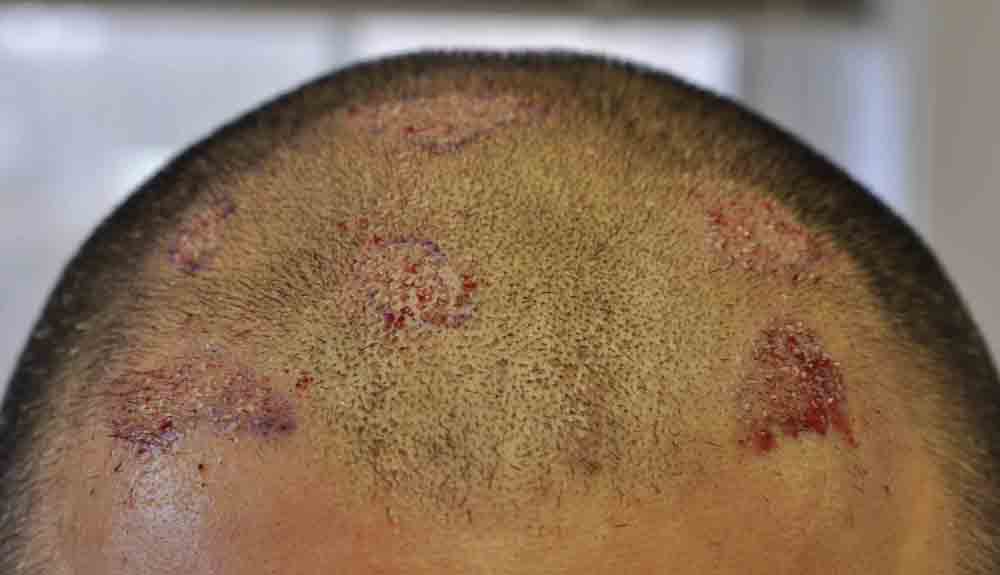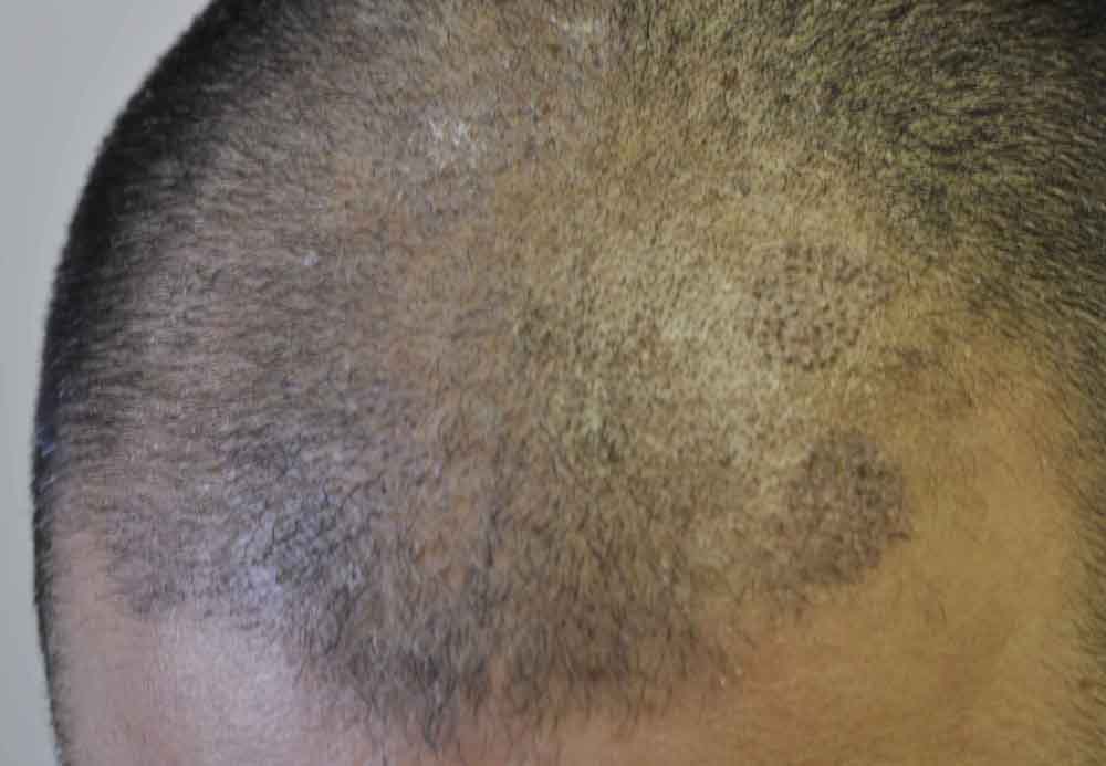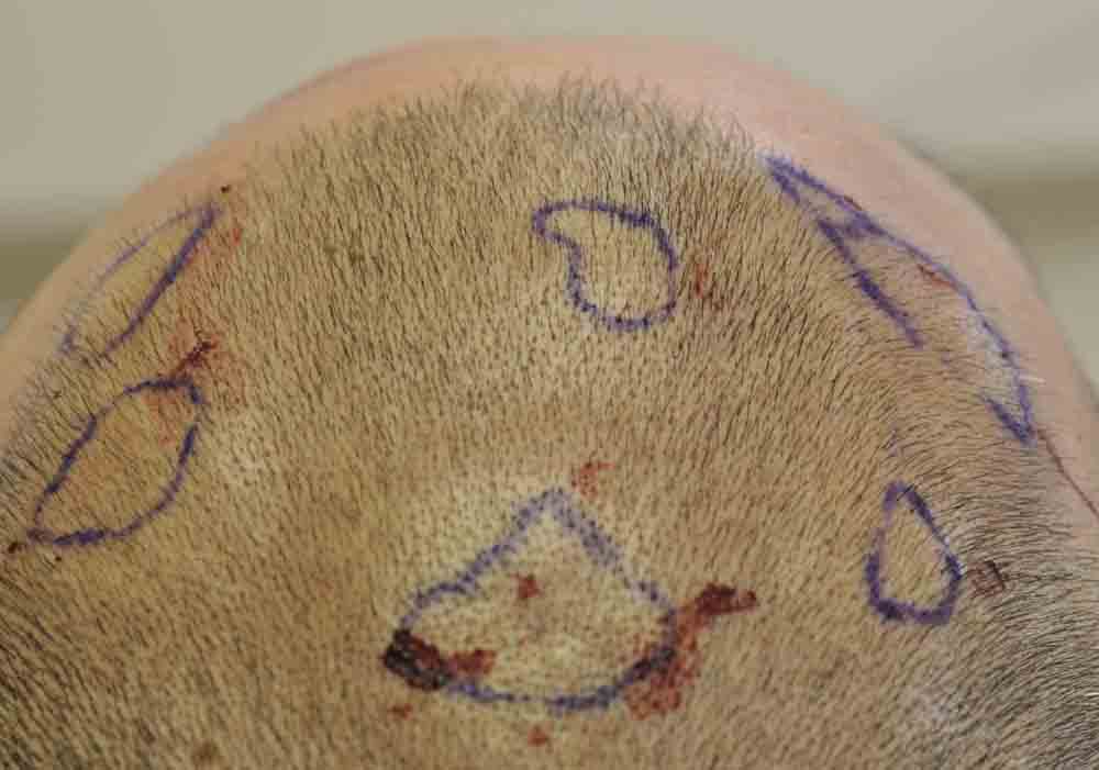 This fellow keeps a very short haircut. He's in his late 40s and his family history doesn't suggest its likely that he bald significantly..but he has thinned in areas. Mainly its areas of miniturization that we'll address with FUE. He has lots of hair for future FUE if necessary and given his short hair length, and concern about a scarline, I think he's making the right choice with FUE.