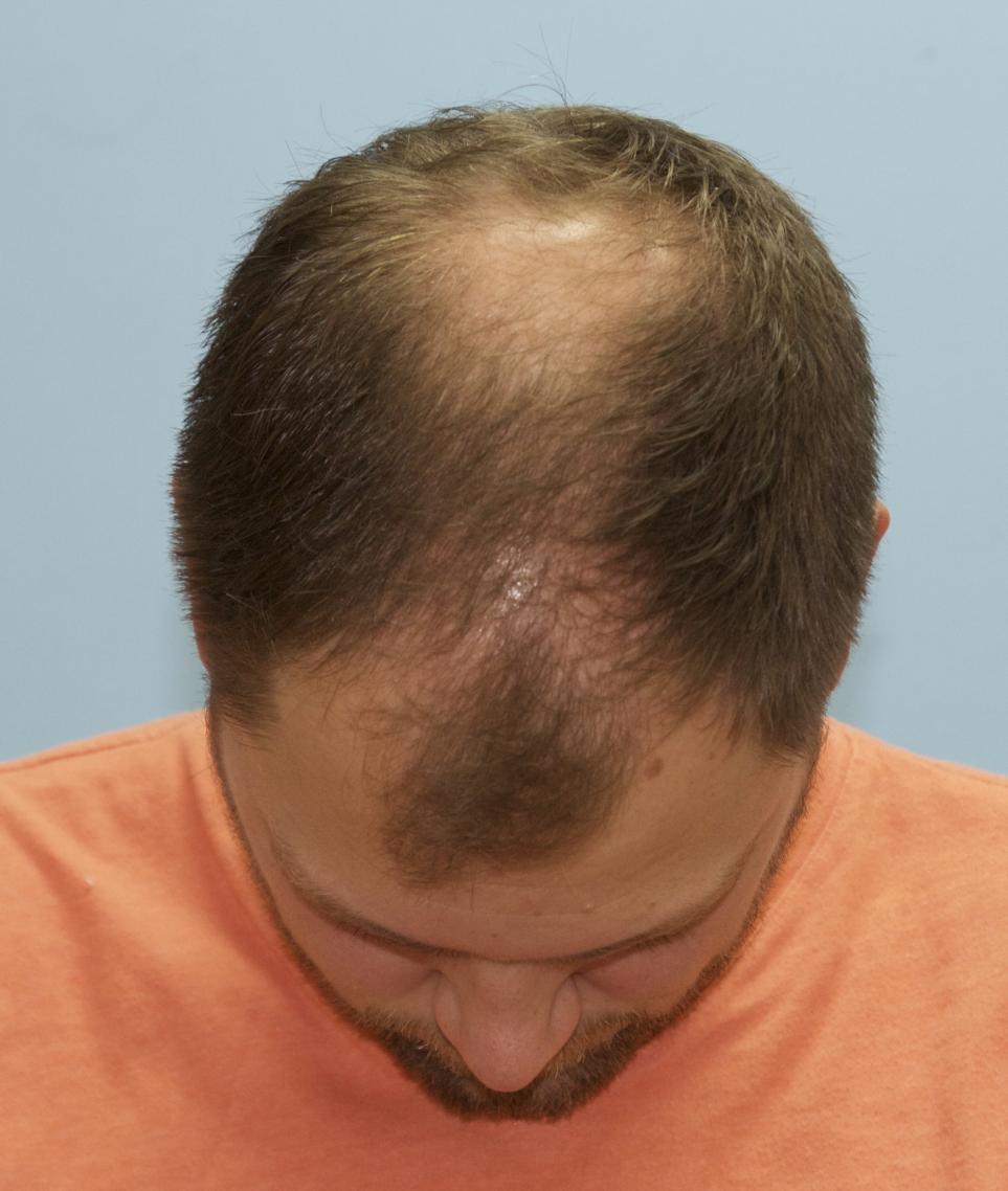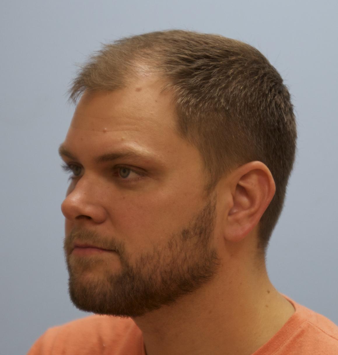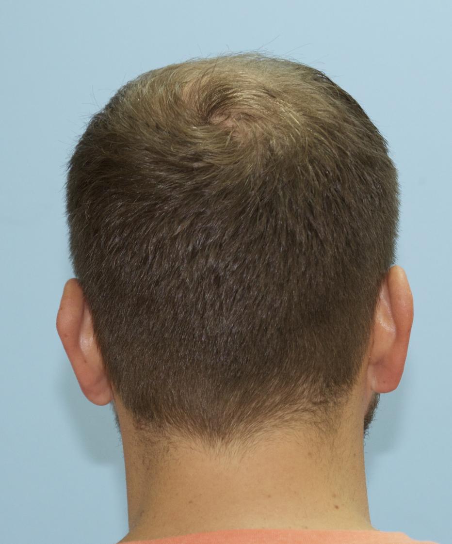 This patient came in yesterday for his one year follow up after receiving 4000 FUE grafts in a two consecutive day session. 1500 grafts were placed in his vertex, and 2500 grafts were placed in his frontal forelock and hairline. He is stable on finasteride. All grafts were harvested and placed by Dr. Vories. Full facial images were used with permission of the patient.
