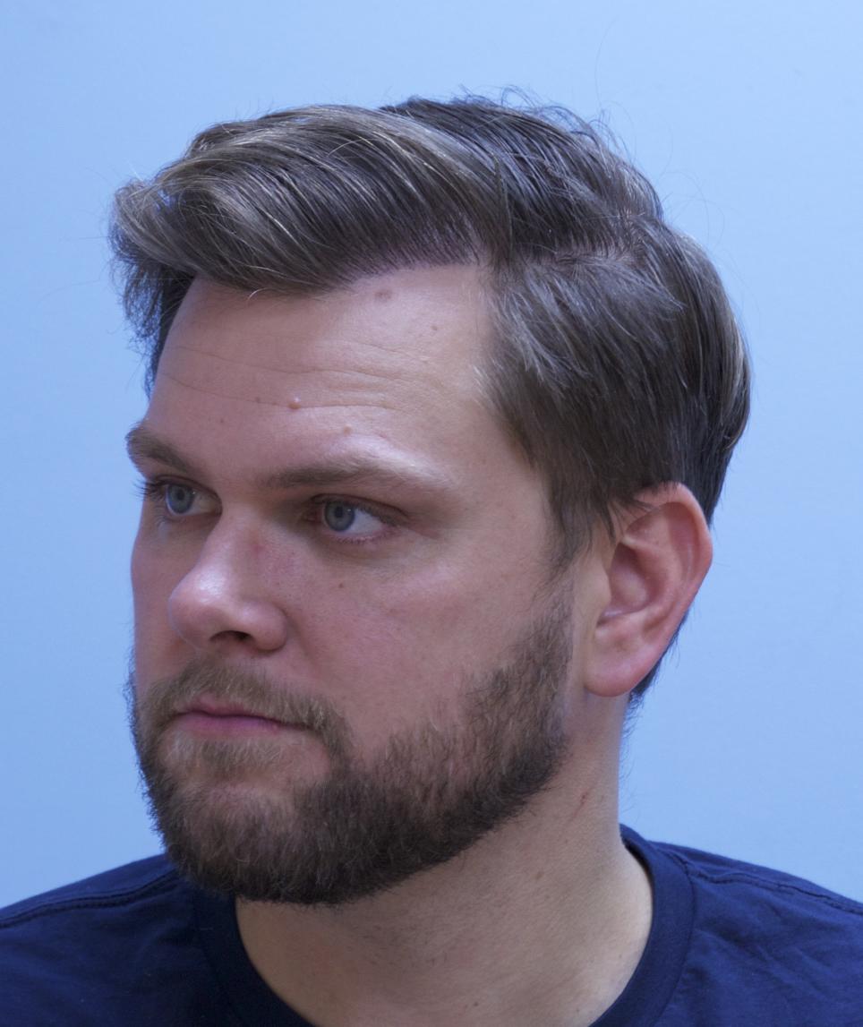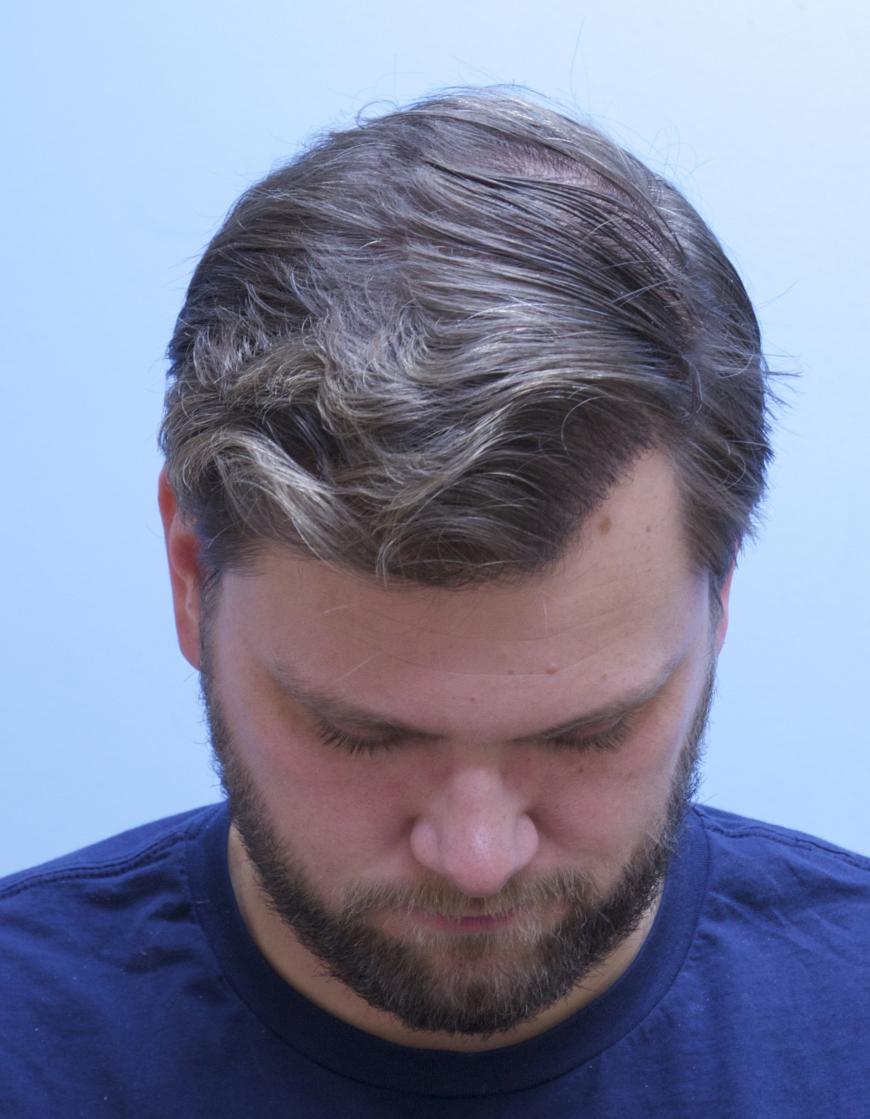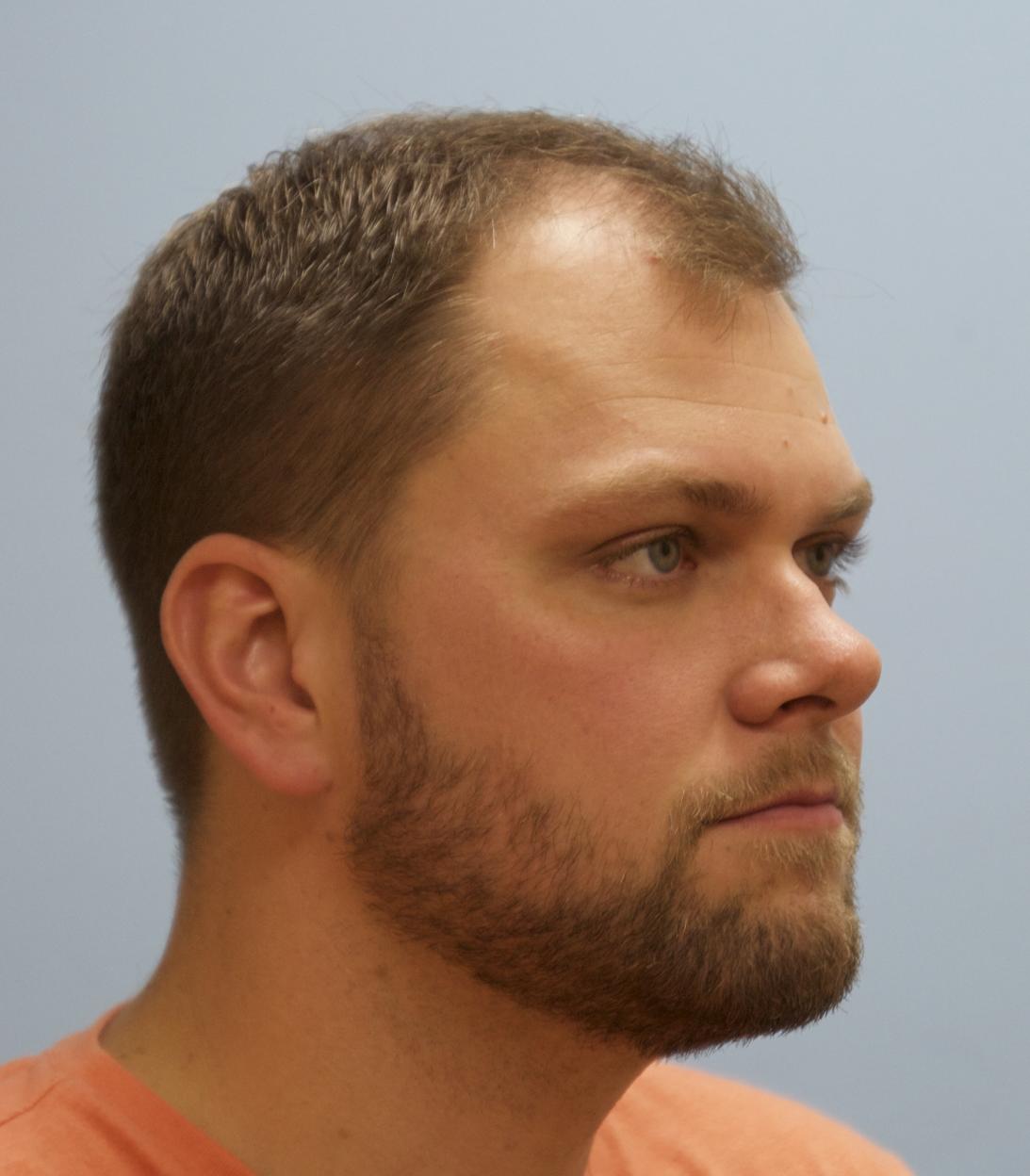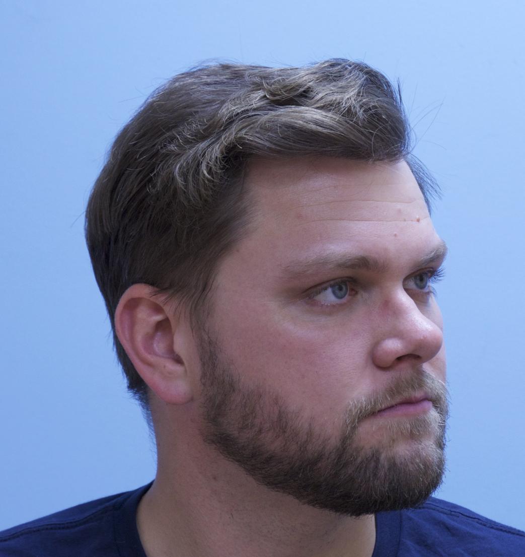 This patient came in yesterday for his one year follow up after receiving 4000 FUE grafts in a two consecutive day session. 1500 grafts were placed in his vertex, and 2500 grafts were placed in his frontal forelock and hairline. He is stable on finasteride. All grafts were harvested and placed by Dr. Vories. Full facial images were used with permission of the patient.