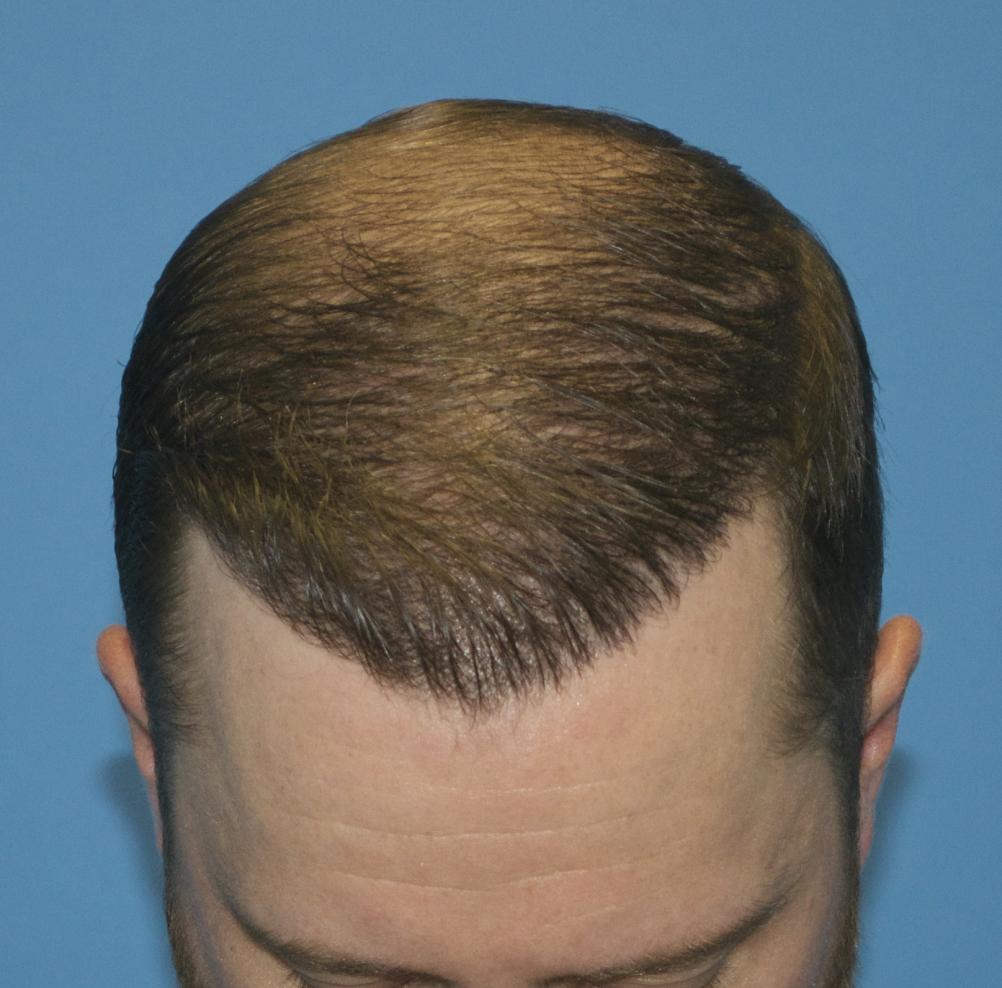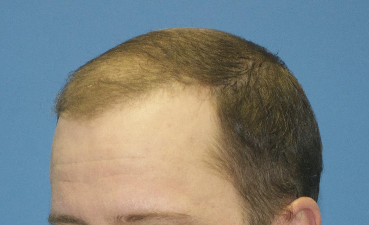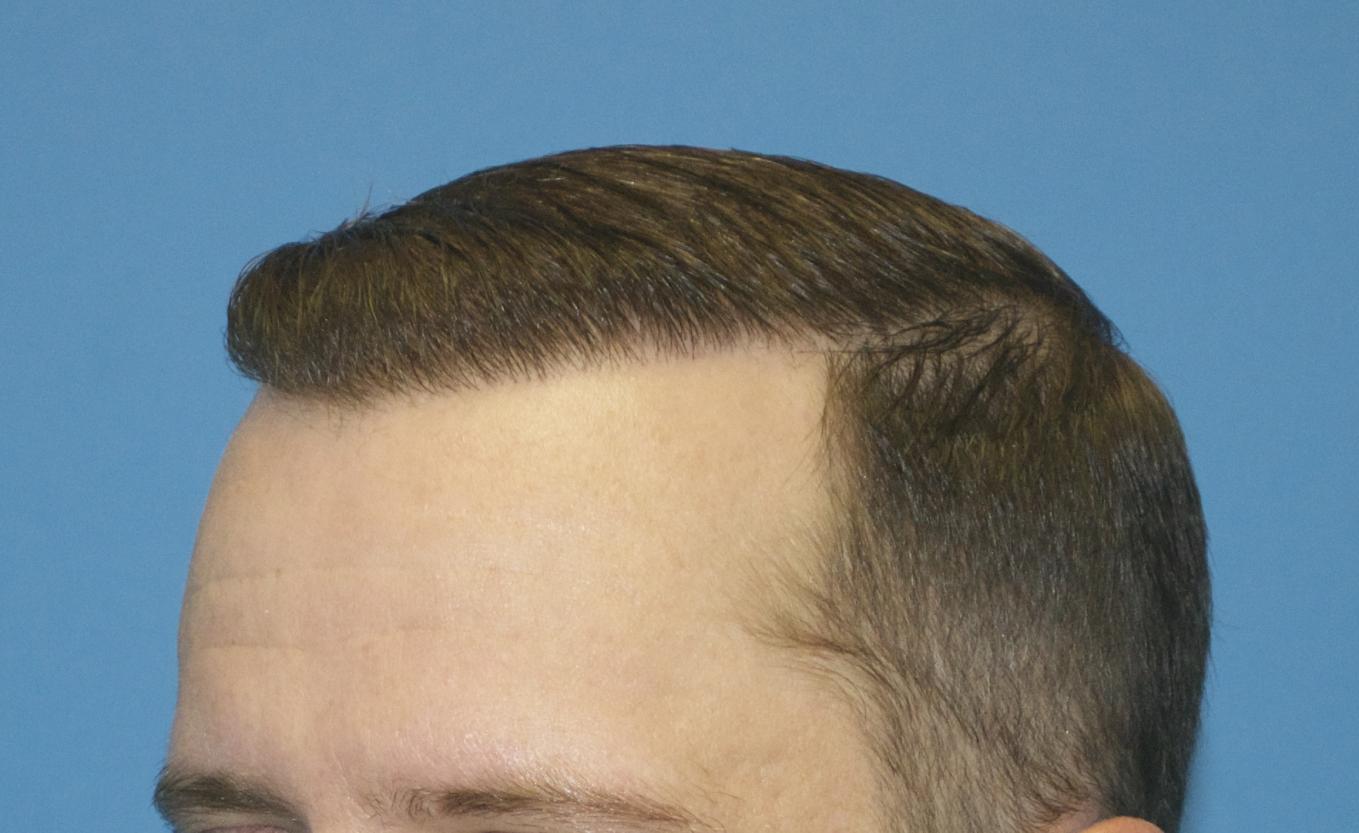 This patient came in today for his 6 month follow up after receiving 2000 FUE grafts into his frontal forelock and hairline only. He wished to be placed on finasteride before grafting into his vertex. 0.80 mm Vortex punch was used for extraction, and Hans Lion Implanters used for placement. All grafts were harvested and placed by Dr. Vories.