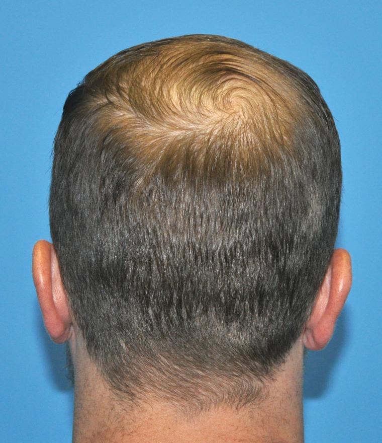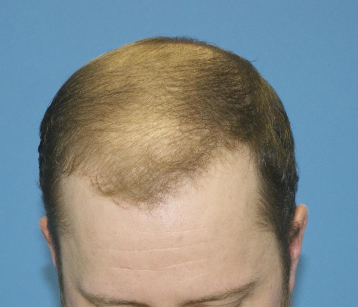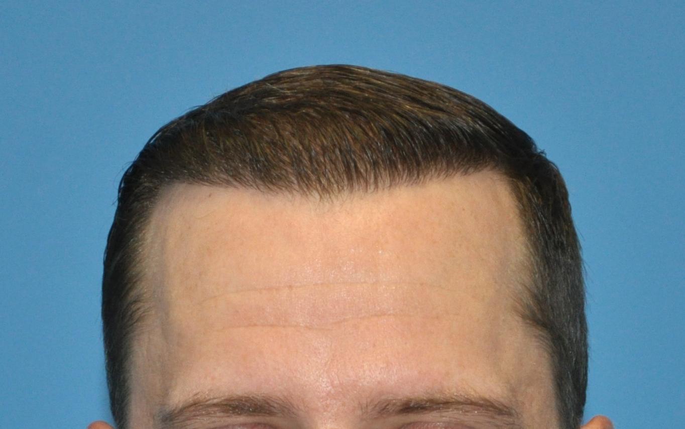 This patient came in today for his 6 month follow up after receiving 2000 FUE grafts into his frontal forelock and hairline only. He wished to be placed on finasteride before grafting into his vertex. 0.80 mm Vortex punch was used for extraction, and Hans Lion Implanters used for placement. All grafts were harvested and placed by Dr. Vories.