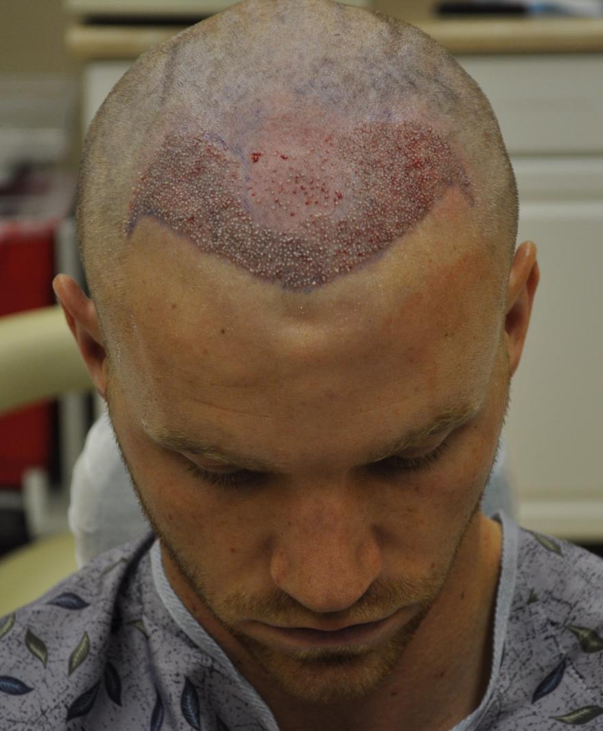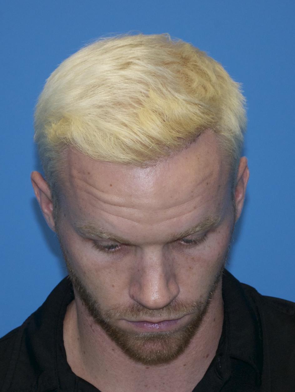 This patient came in today for his 9 month follow up after receiving 2000 FUE grafts in a one day session. He is stable on finasteride. Grafts were harvested with a 0.80 mm Vortex punch and placed with Hans Lion Implanters. All grafts harvested and placed by Dr. Vories. Bleached hair was the patient's decision.
