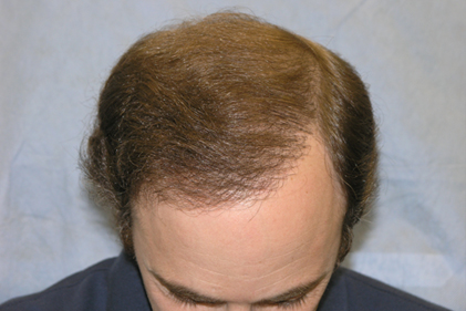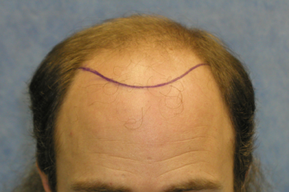 Bernstein Medical - Center for Hair Restoration Patient ATF is a Norwood class 6 with brown, wavy medium hair and a donor density of 2.3. Because of his tight scalp, he had a relatively small first hair transplant session of 1,917 follicular unit grafts.