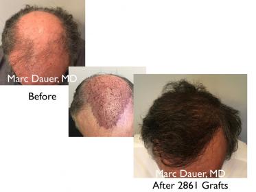 Here is a patient of mine who received 2861 grafts via FUT. The "after" photos are shown after 12 months. The patient is thrilled with is results and planning on returning for another procedure to fill in the crown and add some density to the frontal and mid scalp.