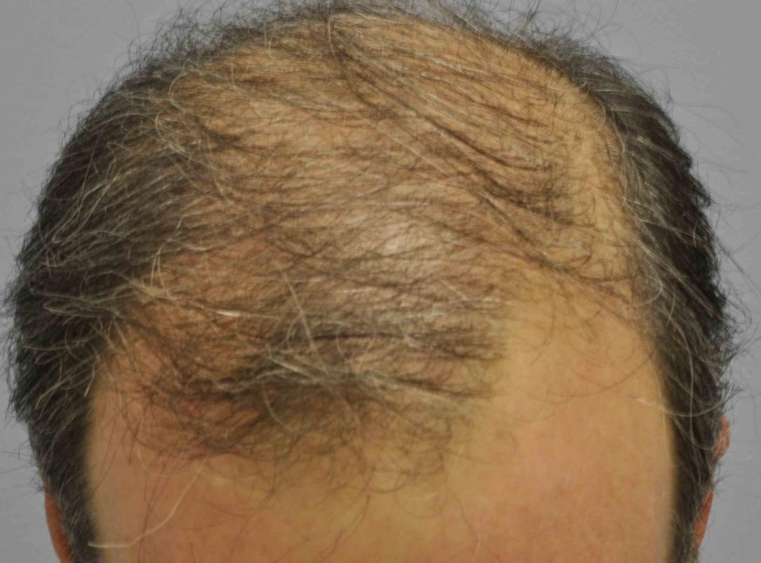 Case 4 is a 52 year old a year out from 3200 grafts of wirey hair but a big color contrast with his skin.
