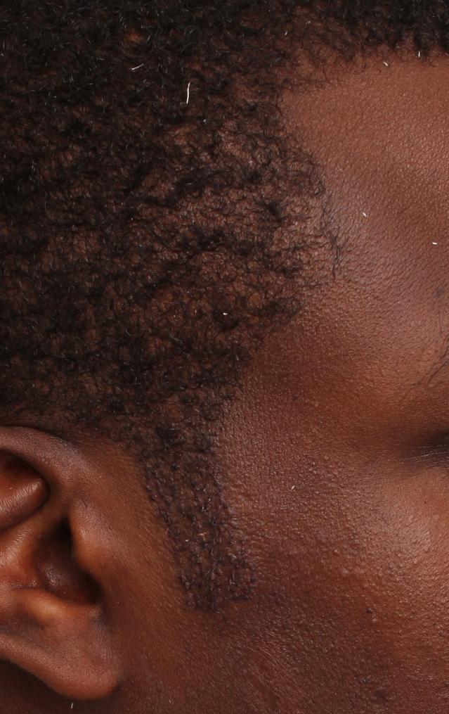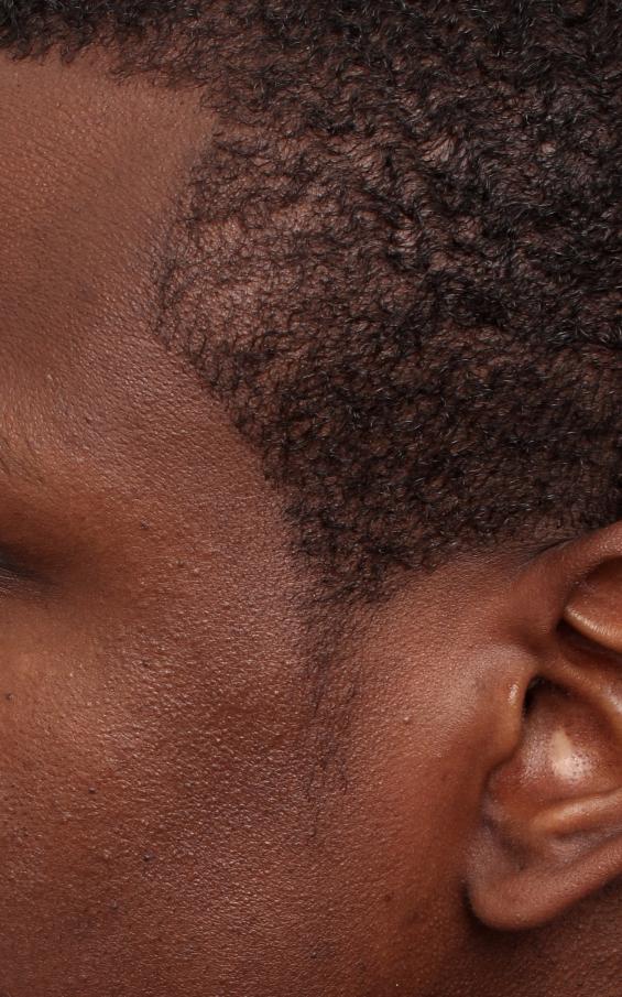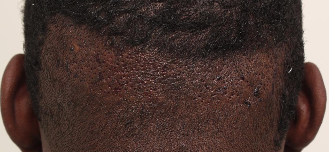 Dr. True performed an FUE of 365 grafts to restore contour and thickness to this patient's sideburns. It is typical for this region as well as the temporal areas to mature faster than the top. This result is 5 months post-op. 89 singles, 138 doubles, 3 threes.